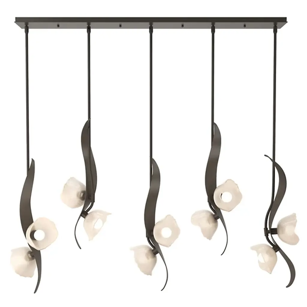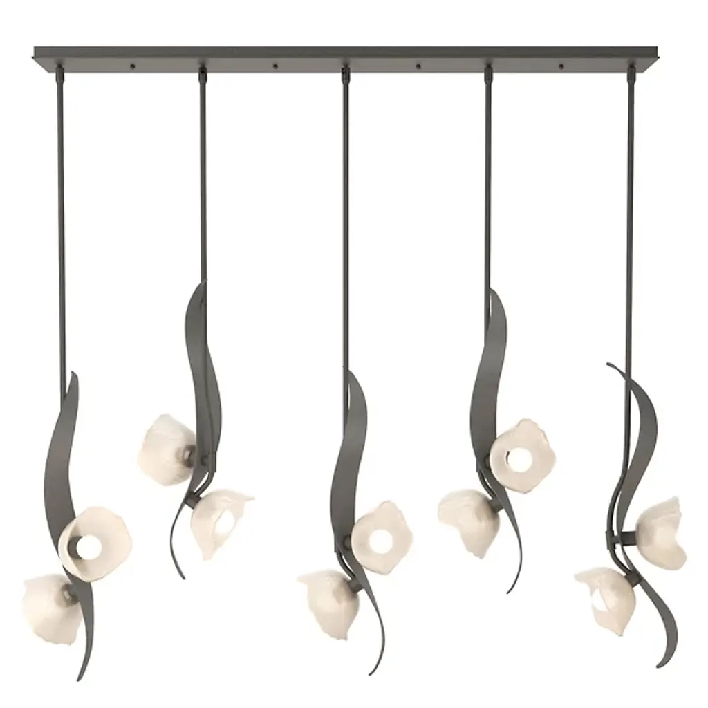 Introduce a new level of sophistication to your space with the Hubbardton Forge Mika 10-Light Linear Suspension. Distinctive and graceful, this pendant showcases a beautiful array of handmade Italian glass shades. Crafted with care in Vermont, USA, this linear pendant made of steel and glass brings both aesthetic appeal and functionality. With its irregular glass shade shape, it offers an artistic touch to any living room, kitchen, or dining room looking for transitional styling.