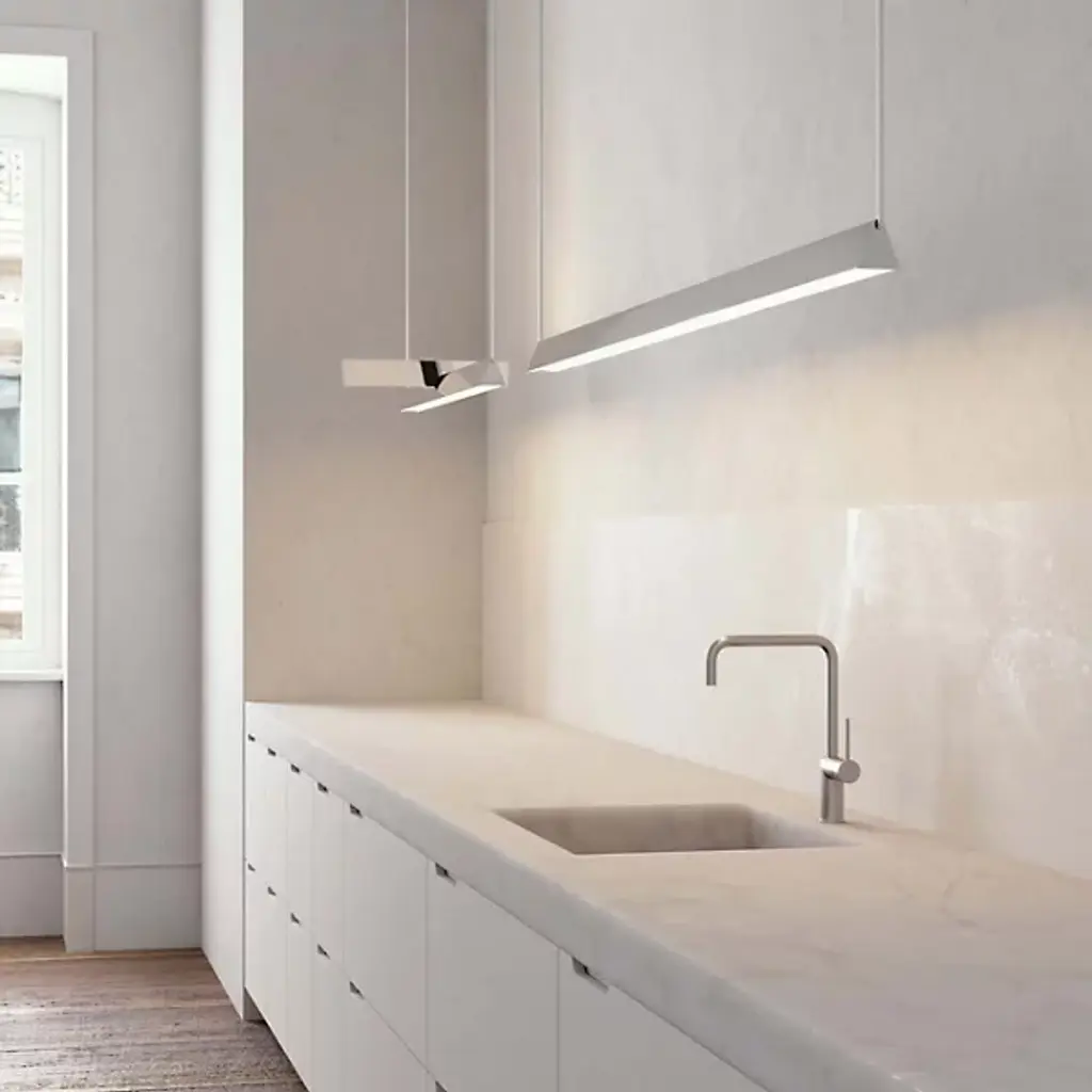 Presented by Lambert & Fils in collaboration with Canadian designer Guillaume Sasseville, the Mile 04 Duo LED Linear Suspension focuses on stripping down the linear lighting unit to its barest form while elevating it with an intentional composition of materials and placement. Based in Montreal, this powerhouse of talent created the Mile to feature minimal suspension with a mixture of focused and indirect light that flows from a 90-degree pivot.