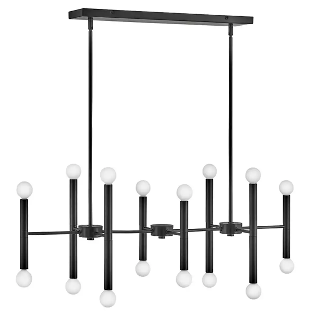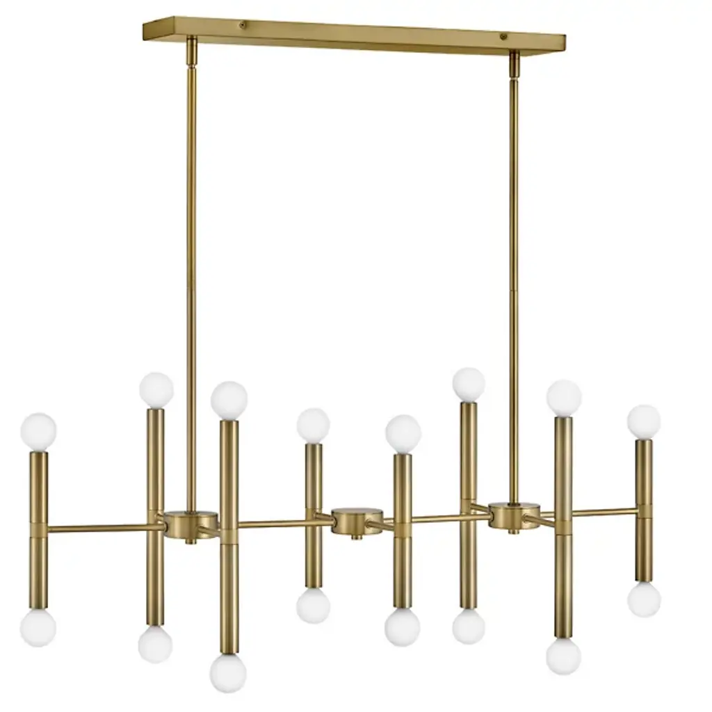 Rhythmic in composition, the Millie Linear Suspension from Lark pulls one’s gaze from left to right like a piece of sheet music. The clarity of the piece’s silhouette and its elegant geometry draw inspiration from mid-century modern design. Its long, linear format proves ideal over a dining table or kitchen island. Slender, vertical arms cascade overhead in a visual that awes from below and stands out from afar. The bulbs maximize their brilliance by doing away with shades. Having the bulbs facing up and down results in an encompassing glow and an uplifting warmth.