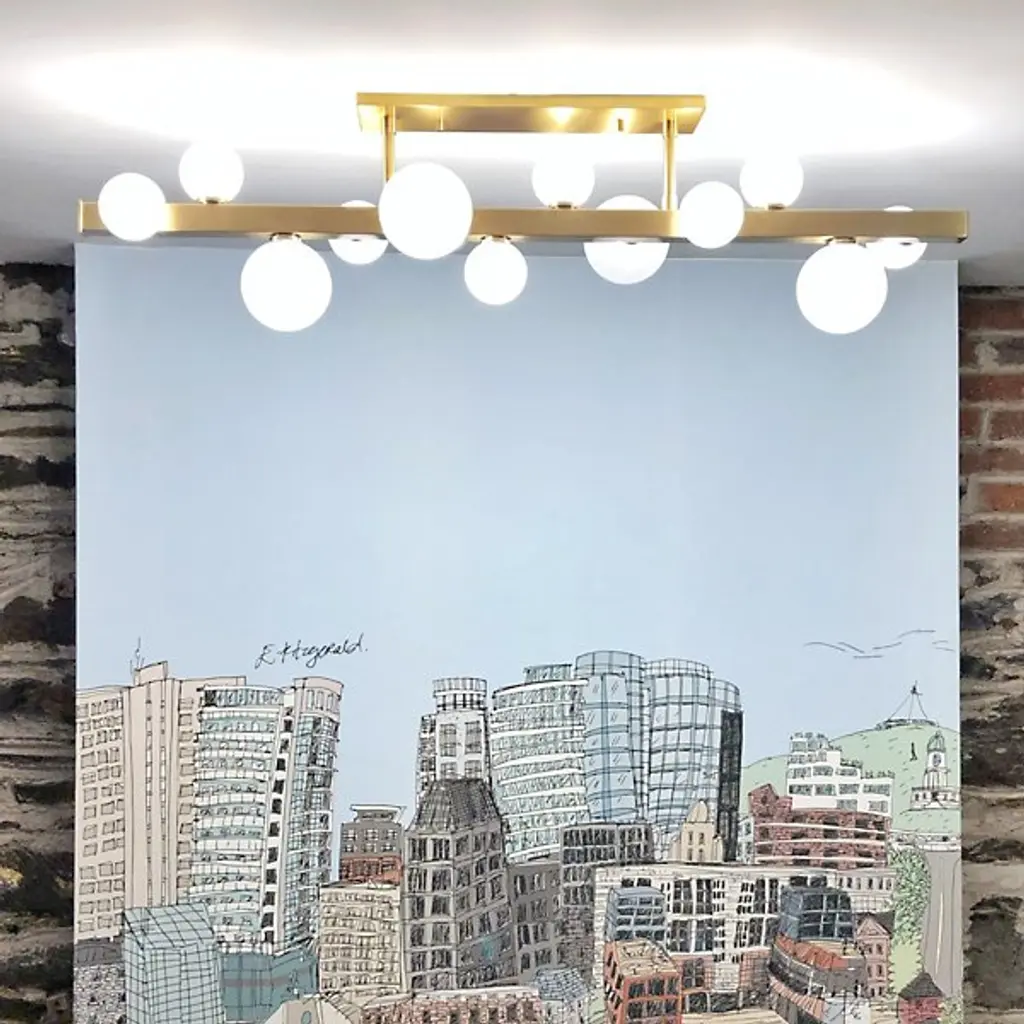 The Hudson Valley Mini Hinsdale Linear Suspension is playful yet design driven with glass globes adorning a simple metal frame. The glass shades seemingly float in space as if unseen magnetism is at work, lighting the space with a unique take on modern lighting. Lit with energy efficient LEDs, this sleek piece is also eco-friendly while being chic in aesthetic.
