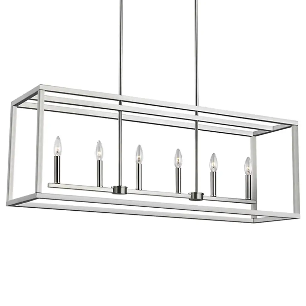 The Moffet Street Linear Suspension by Generation Lighting, formerly known as Sea Gull Lighting, adds tinges of rustic style to the more contemporary features of an open frame and exposed bulbs. This combinations results in perfect symbiosis between the featured hand-applied finish and the high gloss of the lamp holders and supporting structure. Sure to be a conversation piece, install over meeting spaces like large kitchen islands and dining tables.
