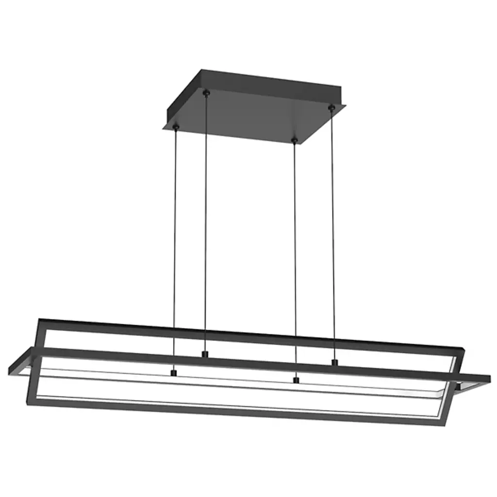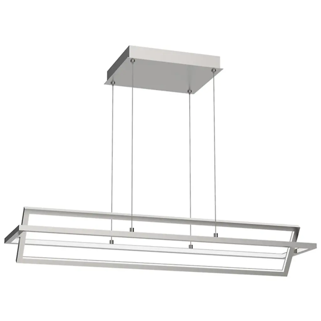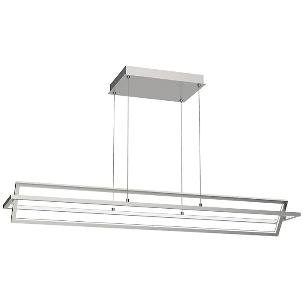 The Mondrian Large LED Linear Suspension by Kuzco Lighting is an airy design with a clean, contemporary build. Suspended from a square canopy, a pair of rectilinear frames that illuminate along their interior are layered around one another for a dynamic display of light. Bright with a lightweight look, the crisp form and negative space created by this composition allow it to visually blend with its environment, bringing a beautiful touch to its surroundings.