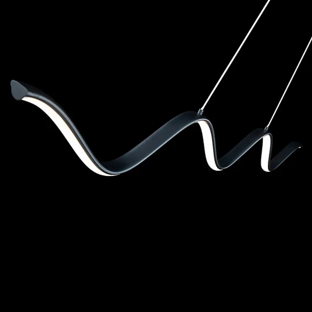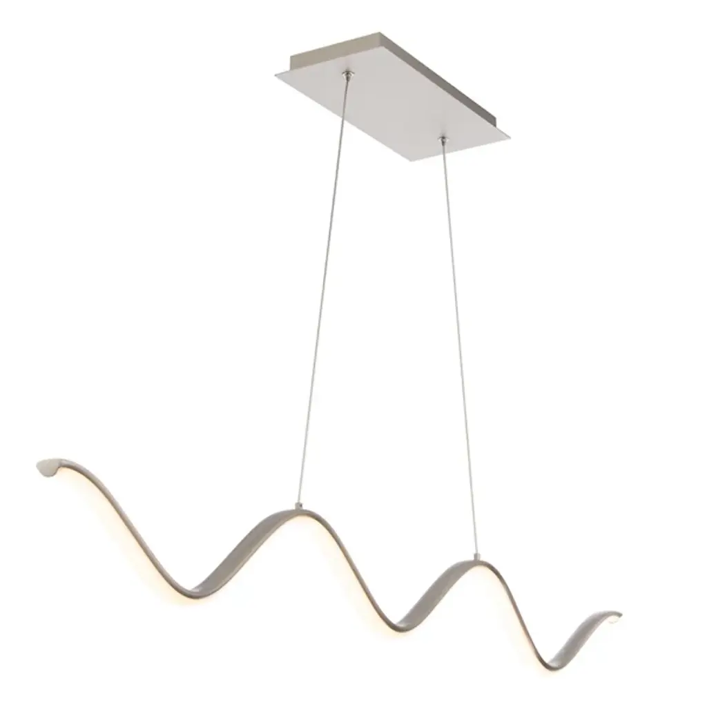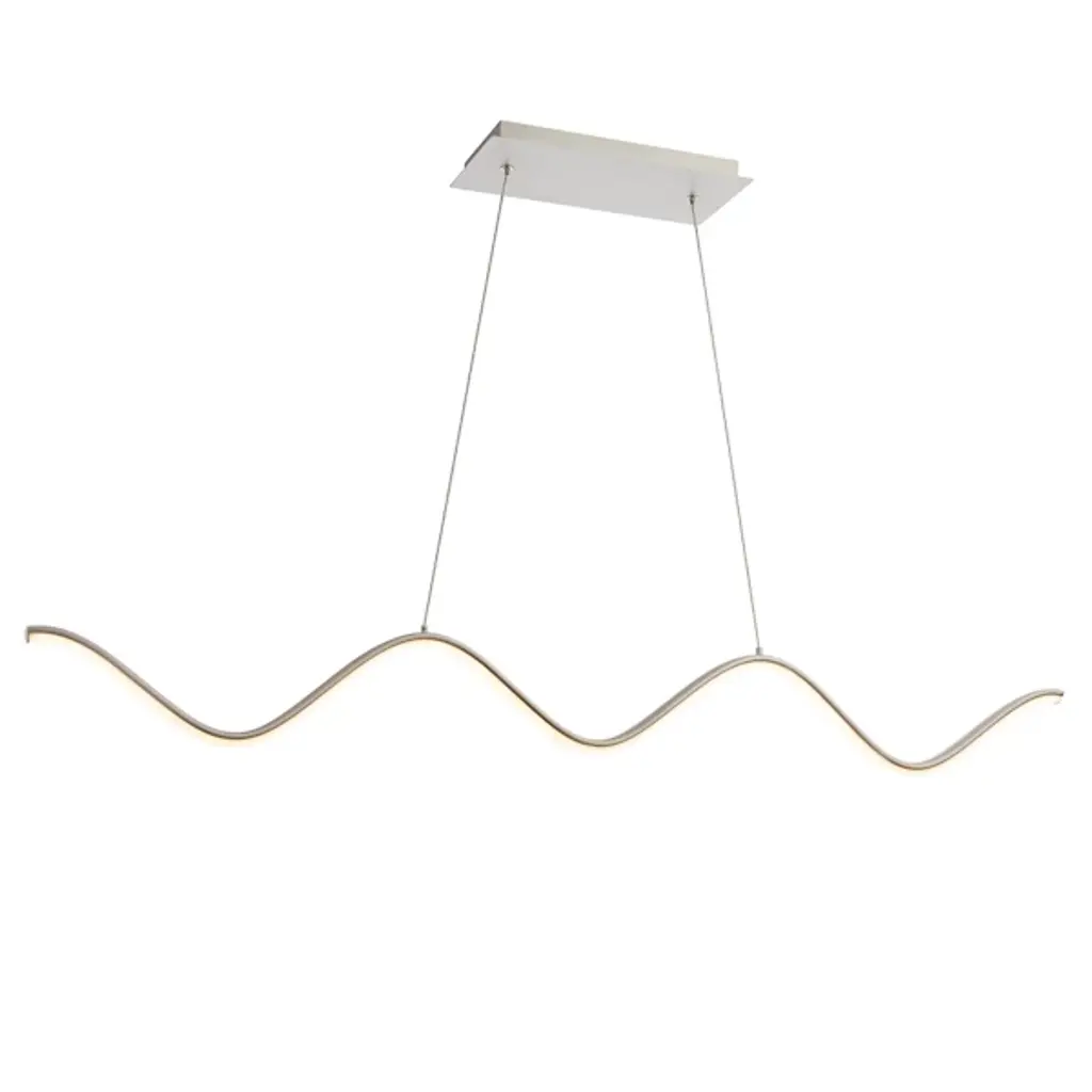Minimalist design with a heavy dose of personality. The Morae LED Linear Suspension from dweLED is an unmistakable piece, guiding the eye over the room with an easy-going wave. It’s the prime addition to the understated modern or contemporary setting. Minimal hardware and fine aircraft cables give the piece a feather quality while mounted overhead. Its long aluminum structure proves ideal in framing one’s dining table or kitchen island. This structure gets the eyes scanning across with soft repeating curves. A slim silicone lens follows the structure to enhance the overall silhouette and mellow the bright light. The LEDs come on to produce a uniform spread of clean illumination.