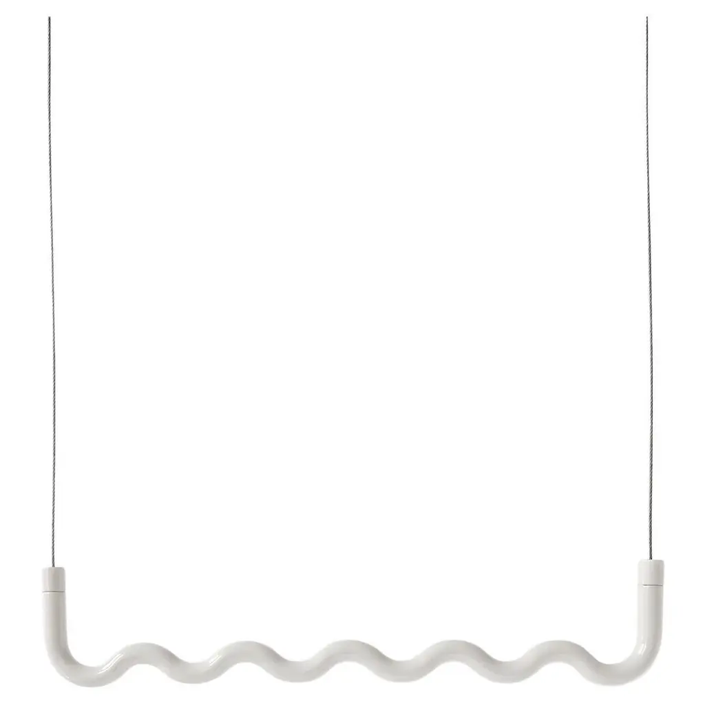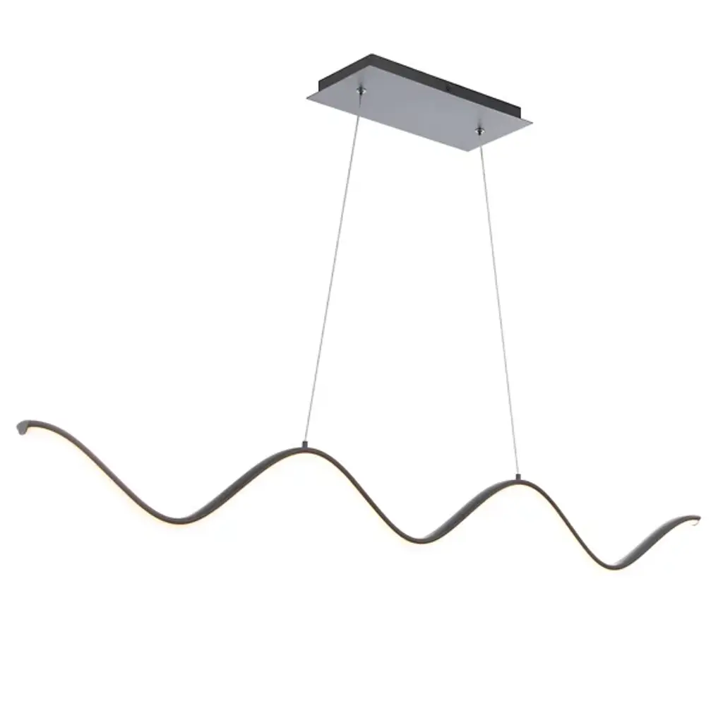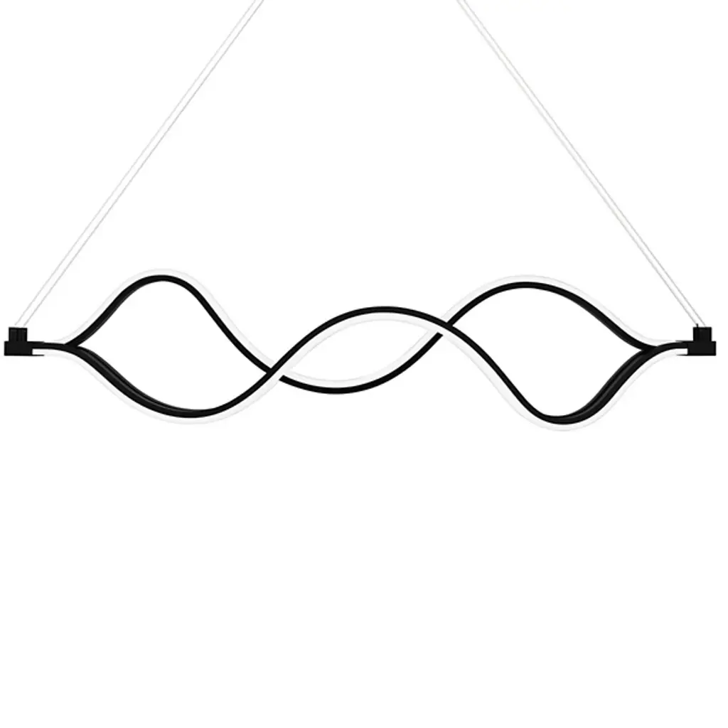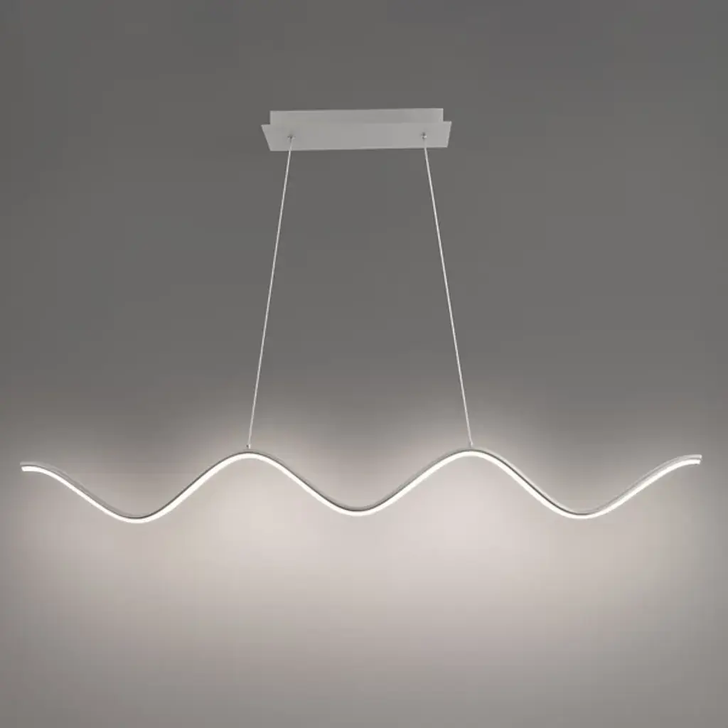Minimalist design with a heavy dose of personality. The Morae LED Linear Suspension from dweLED is an unmistakable piece, guiding the eye over the room with an easy-going wave. It’s the prime addition to the understated modern or contemporary setting. Minimal hardware and fine aircraft cables give the piece a feather quality while mounted overhead. Its long aluminum structure proves ideal in framing one’s dining table or kitchen island. This structure gets the eyes scanning across with soft repeating curves. A slim silicone lens follows the structure to enhance the overall silhouette and mellow the bright light. The LEDs come on to produce a uniform spread of clean illumination.