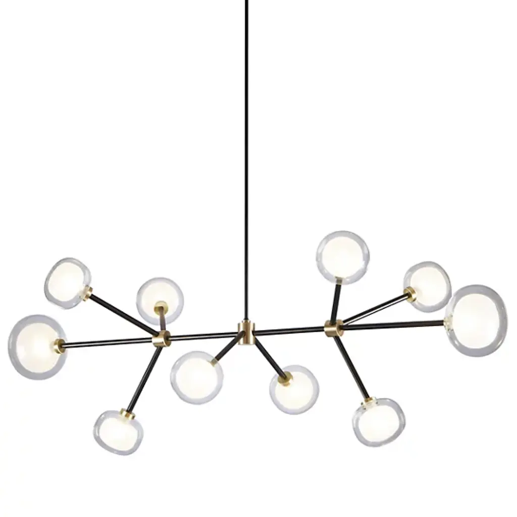Nabila Linear Suspension is a design by Corrado Dotti of Milan for TOOY. Crafted in Italy, it features an artful arrangement of borosilicate glass and iron metalwork. Drawing inspiration from the styles seen in upscale 50’s interior design, the Nabila is a rich, sophisticated piece that provides visual energy to locales of choice. Based on style and scenario, display the Nabila as a solo piece or in multiples to bring your luminary vision to life.