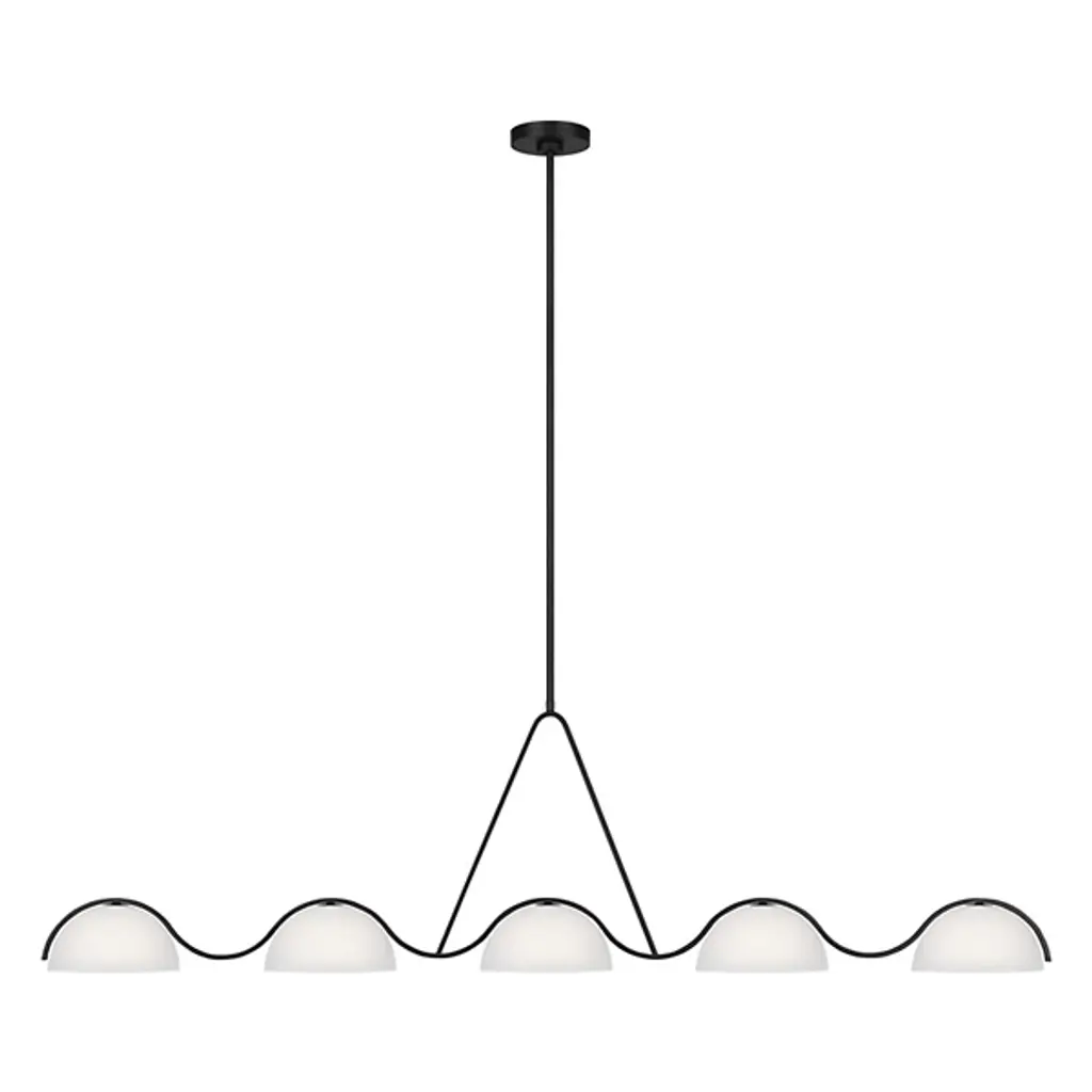 The Nido Linear Suspension from Visual Comfort Studio is designed by Kelly Wearstler. This linear suspension fixture boasts etched cased shades that not only temper the LED light but also add sophistication to your space. The wavy steel framework is a visual delight, creating a dynamic design element. Nido is secured by a downrod attached to a ceiling canopy, offering stability. With dimmable capabilities, this lighting fixture allows you to control the intensity of the light using a separately sold ELV dimmer.