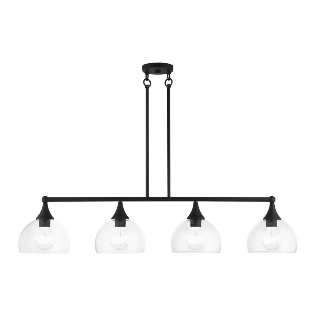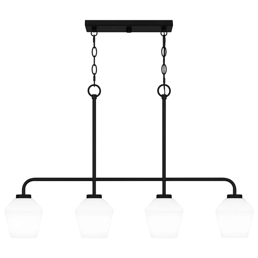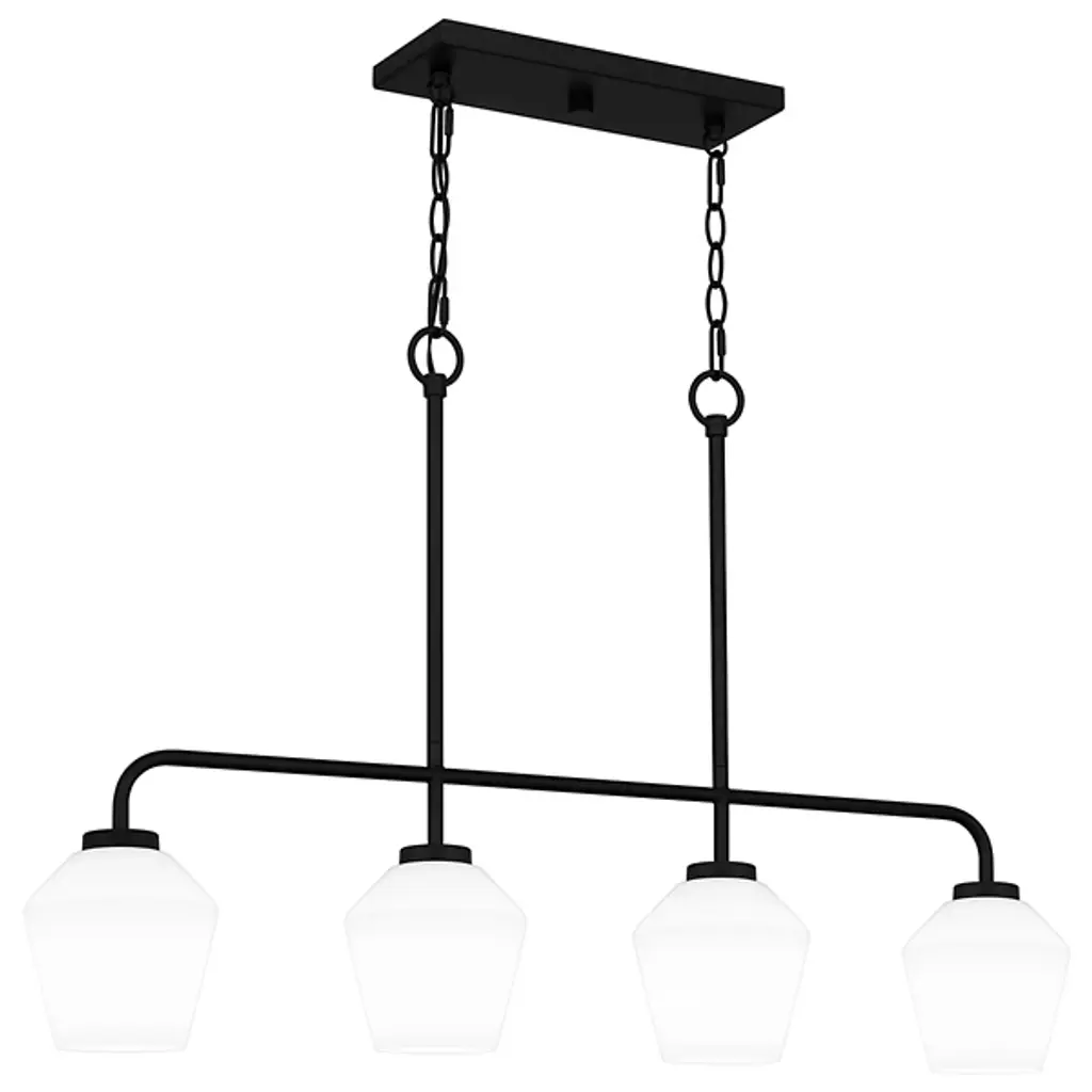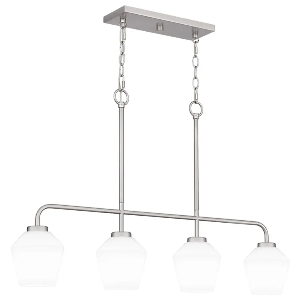Suspend sophistication in your living space with the Nielson Linear Suspension from Quoizel, featuring a sleek steel structure supported by small, slender chains and anchored by a rectangular canopy. This fixture effortlessly blends transitional styling and clean lines, making it a versatile addition to any home decor. Opal etched glass shades with inward bevels add subtle style and sophistication, casting a soft and inviting glow in any room. Crafted from durable steel and designed to withstand damp conditions, this suspension light perfectly embodies transitional style while offering fabulous functionality and enduring elegance.