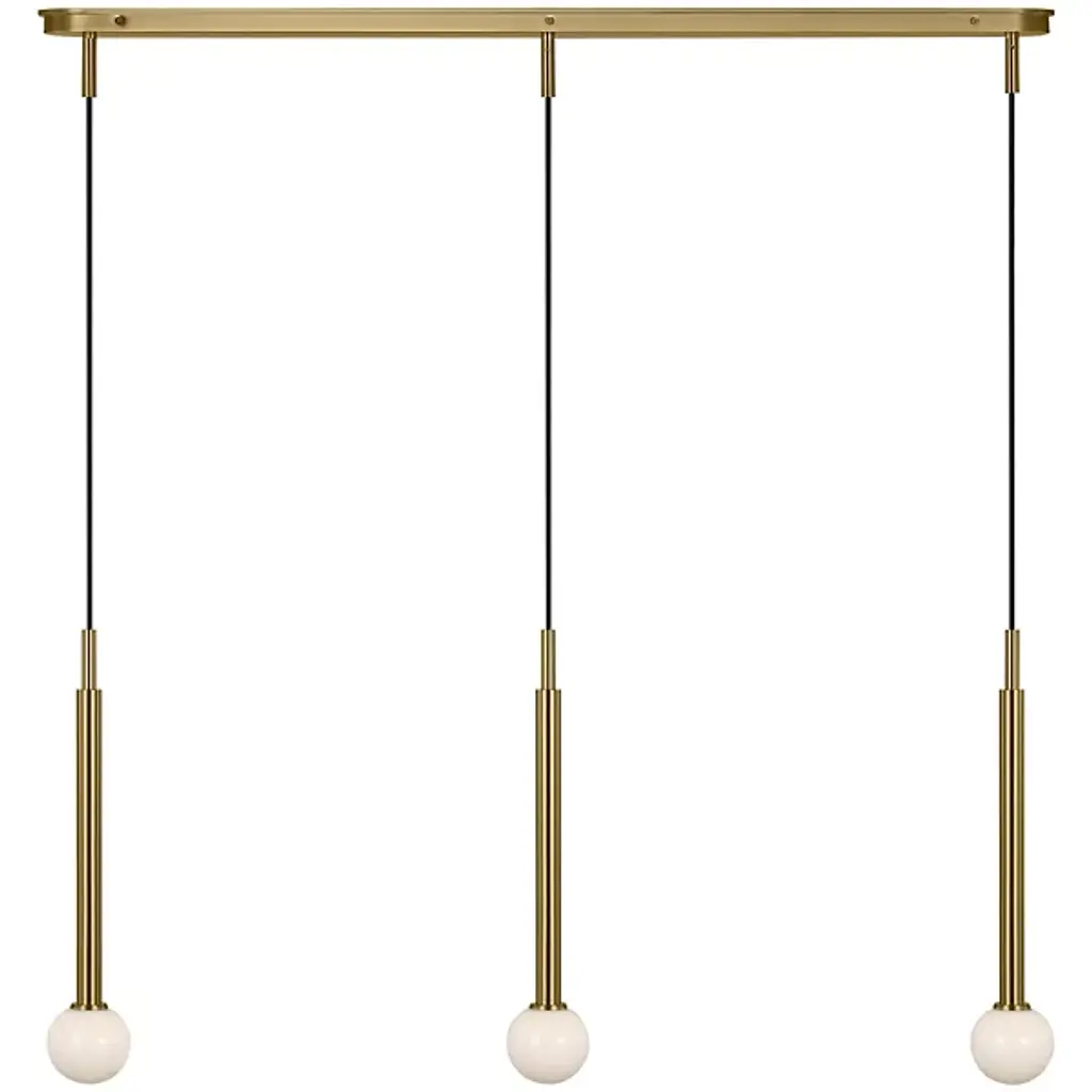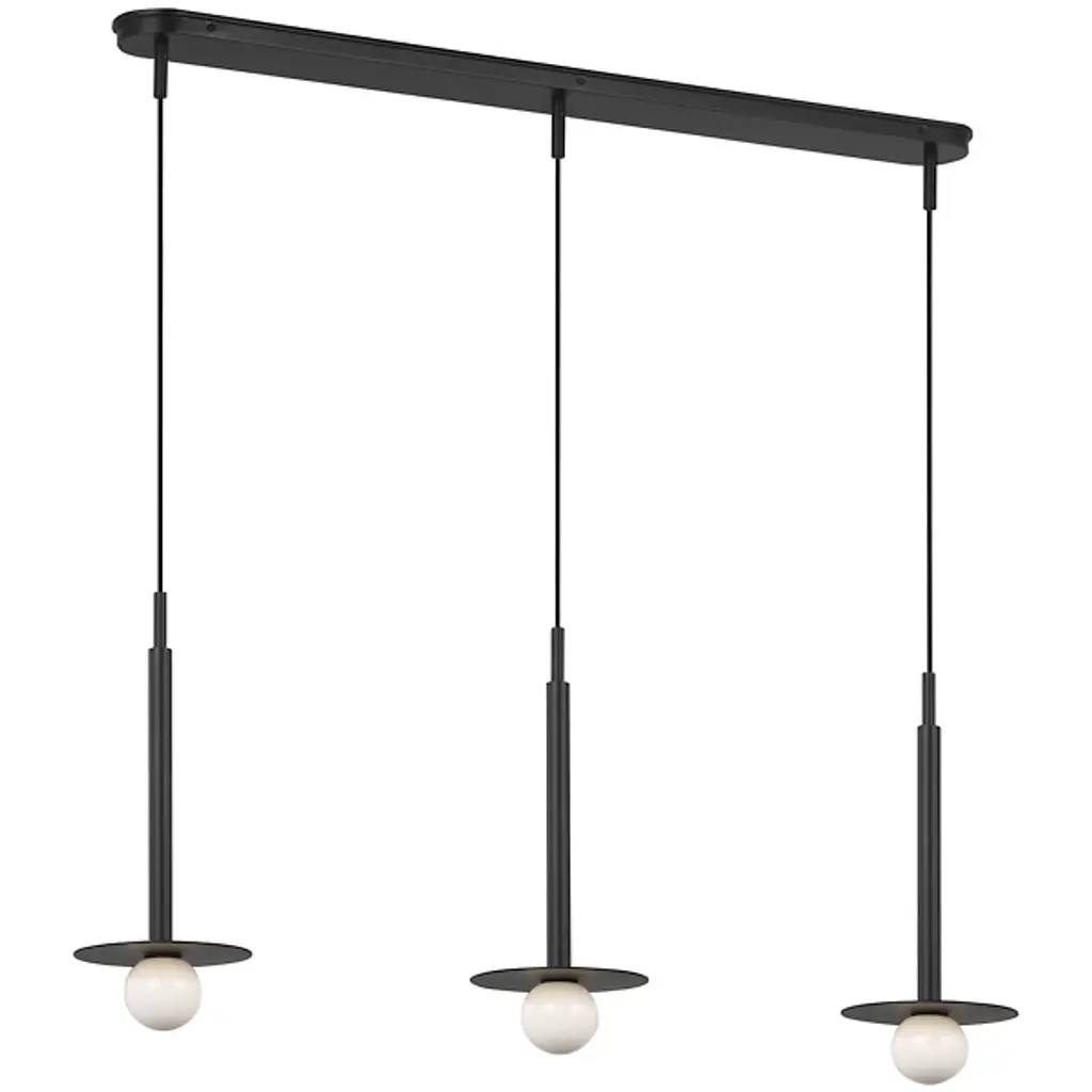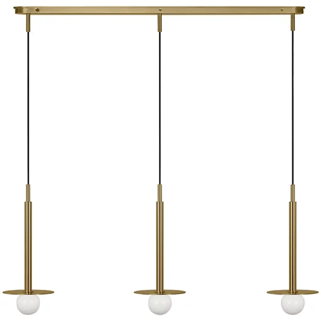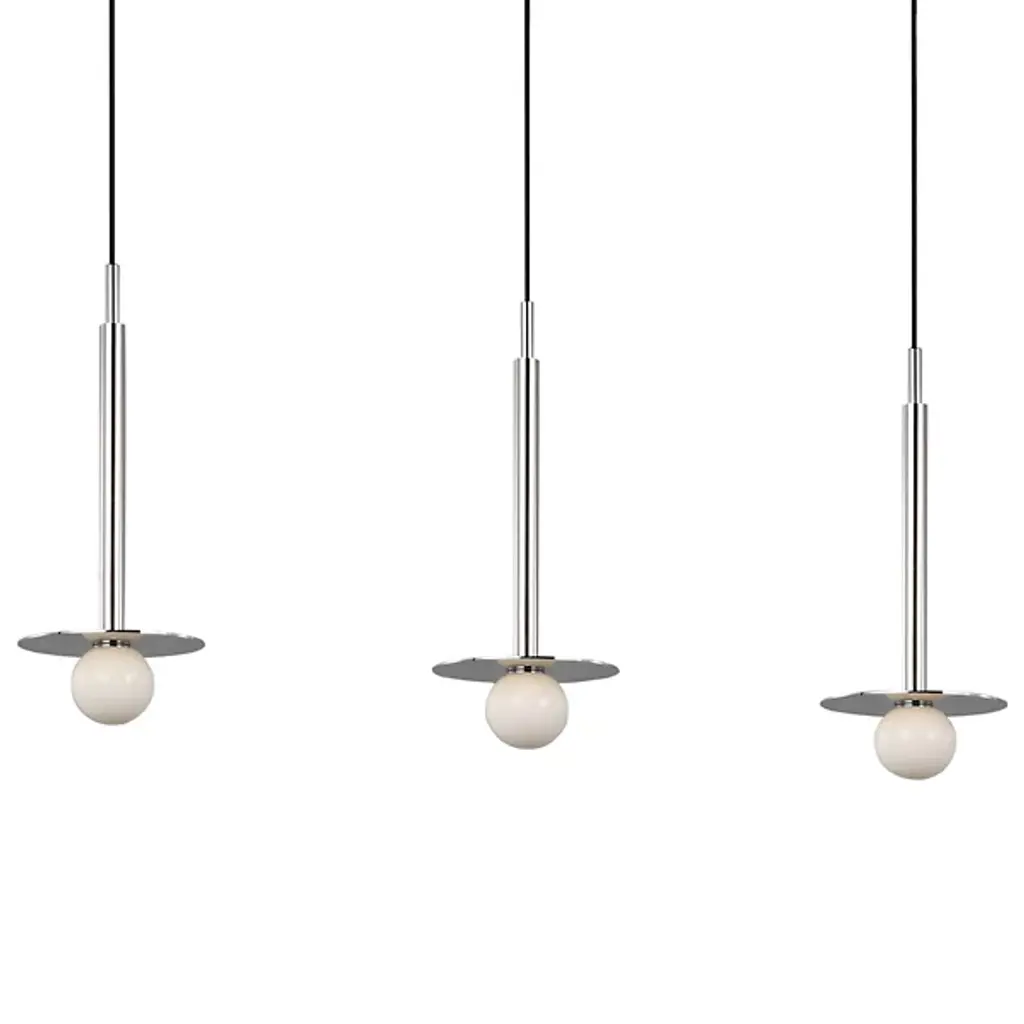 The Nodes Linear Suspension from Visual Comfort Studio blends minimalism with bold design, showcasing Kelly's signature style of mixed materials and curvilinear forms. Light radiates beautifully from milk glass globes against sleek metal discs, offering a striking visual contrast. All fixtures can be used with or without the discs, providing versatile styling options. Hanging fixtures feature elegant black fabric cords, while pivot sconces offer the choice of cord-and-plug or hardwired installation, making this collection a perfect blend of functionality and artistic design.