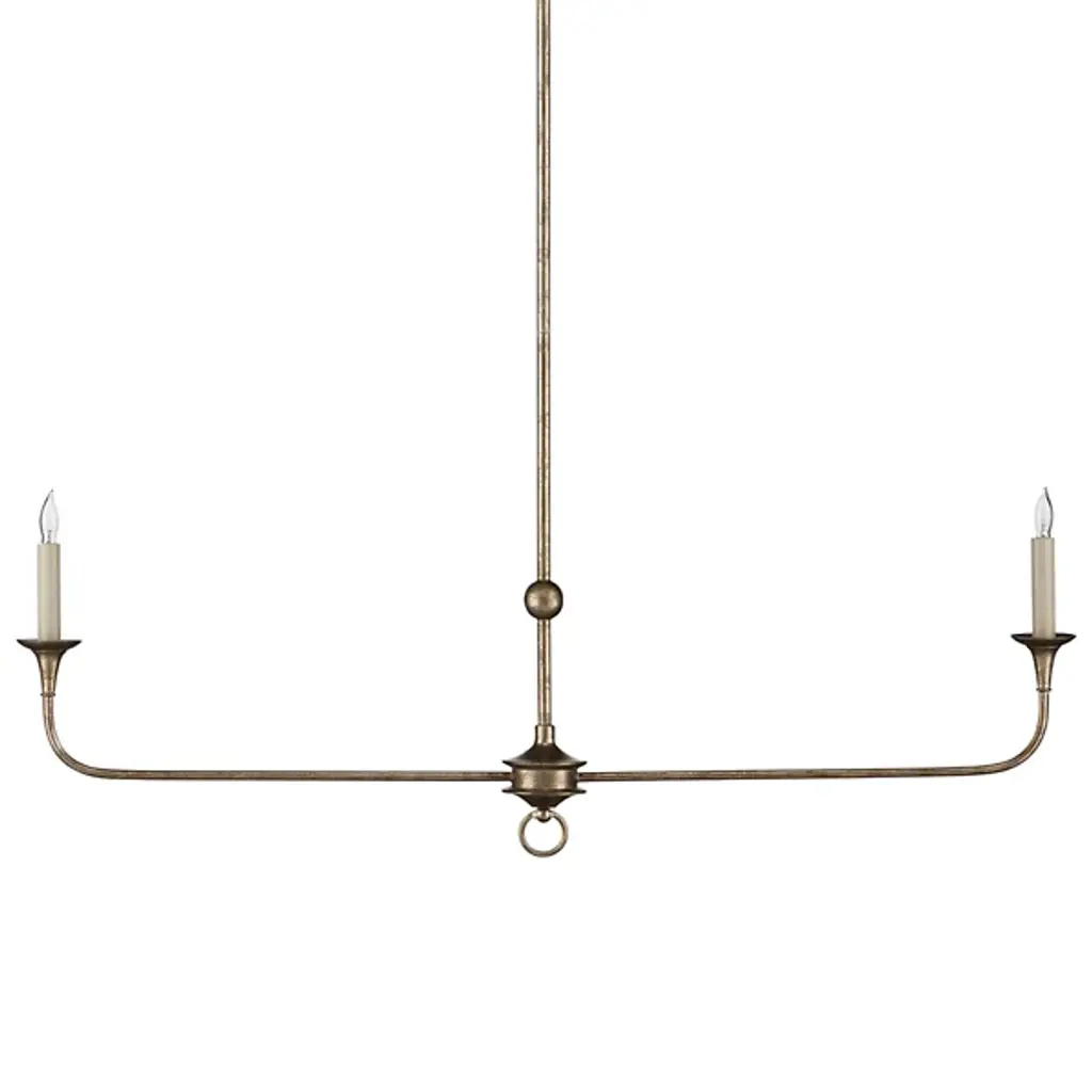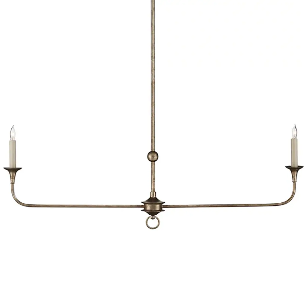 The Nottaway Linear Suspension from Currey & Company offers captivating candlelight-style illumination, creating a pleasant atmosphere. The transitional style is embodied in the upward curve of the framework, adding an artful sensibility to your space. Crafted from wrought iron, Nottaway is durably made, providing longevity. Your light fixture draws your eye as it is illuminated by efficient candelabra base LEDs, providing charm and functionality. Nottaway showcases with evenly spaced LEDs, providing a uniform aesthetic and creating a balanced and harmonious lighting display.