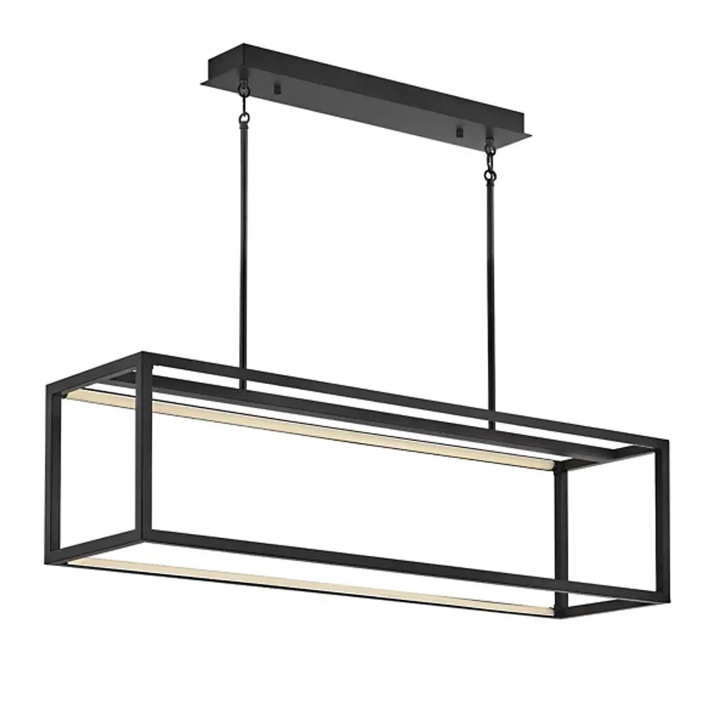 The Onyx LED Linear Suspension from Fredrick Ramond complements the modern space with picture-perfect form and discreet yet filling illumination. It’s hard to imagine a more versatile luminaire for the dining room or kitchen than this clean geometric design. It extends towards the edges of a table surface with a rectangular steel framework. The framework’s open sides offer an unobstructed view of the LED array lining the interior. The LEDs enhance the graphical silhouette of the framework by producing a soft and spacious aura of illumination.