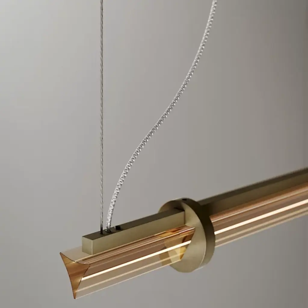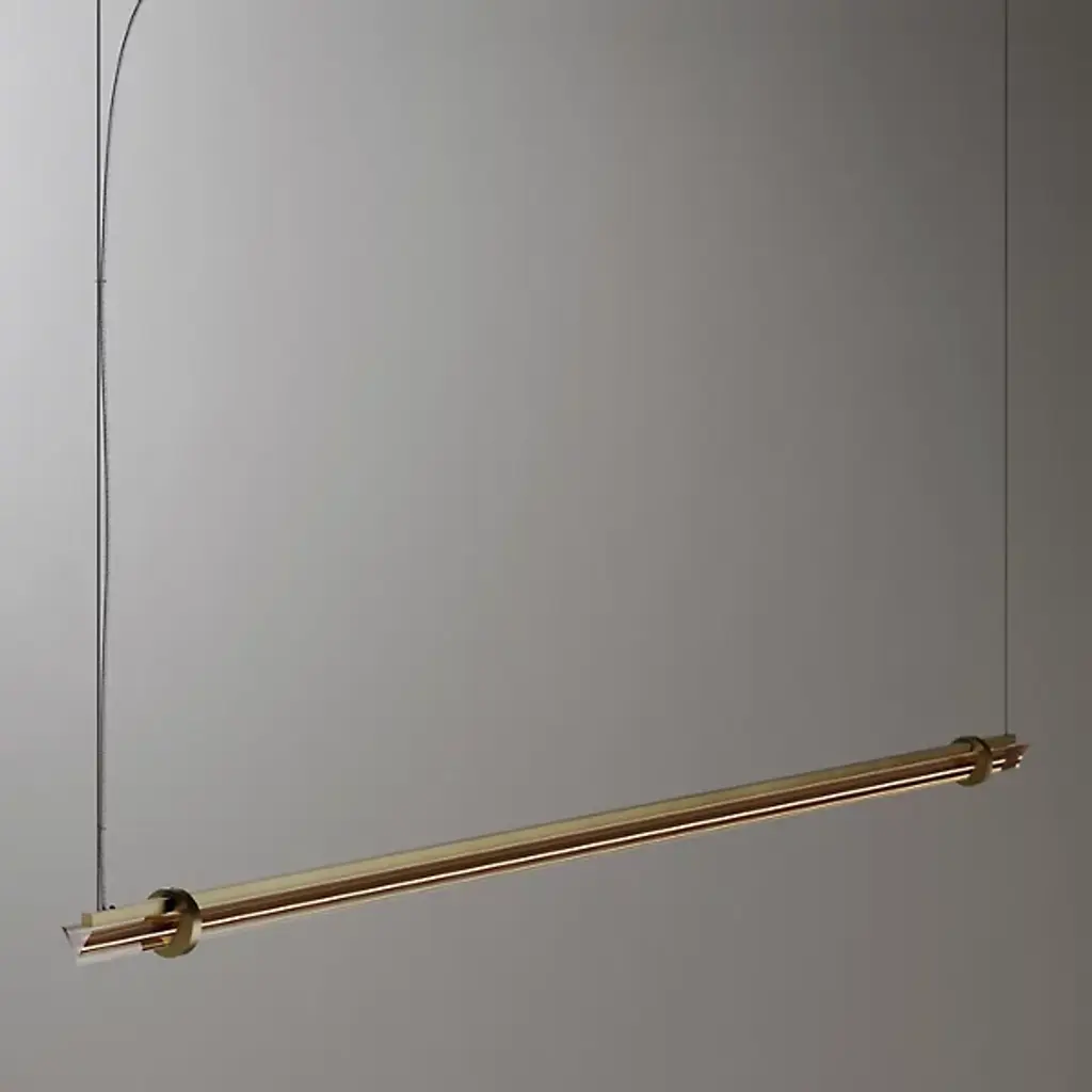 The Optical LED Linear Suspension from Venicem focuses on primary forms. Its durable brass body is complemented by exquisite Murano glass that exemplifies the excellent craftsmanship of the Italian design tradition. Rings at its ends beautifully contrast the ridges of the framework for a luxurious touch. Optical is illuminated by an integrated LED that is dimmable when paired with a TRIAC dimmer. Your light fixture is adaptable to sloped ceilings for your convenience.