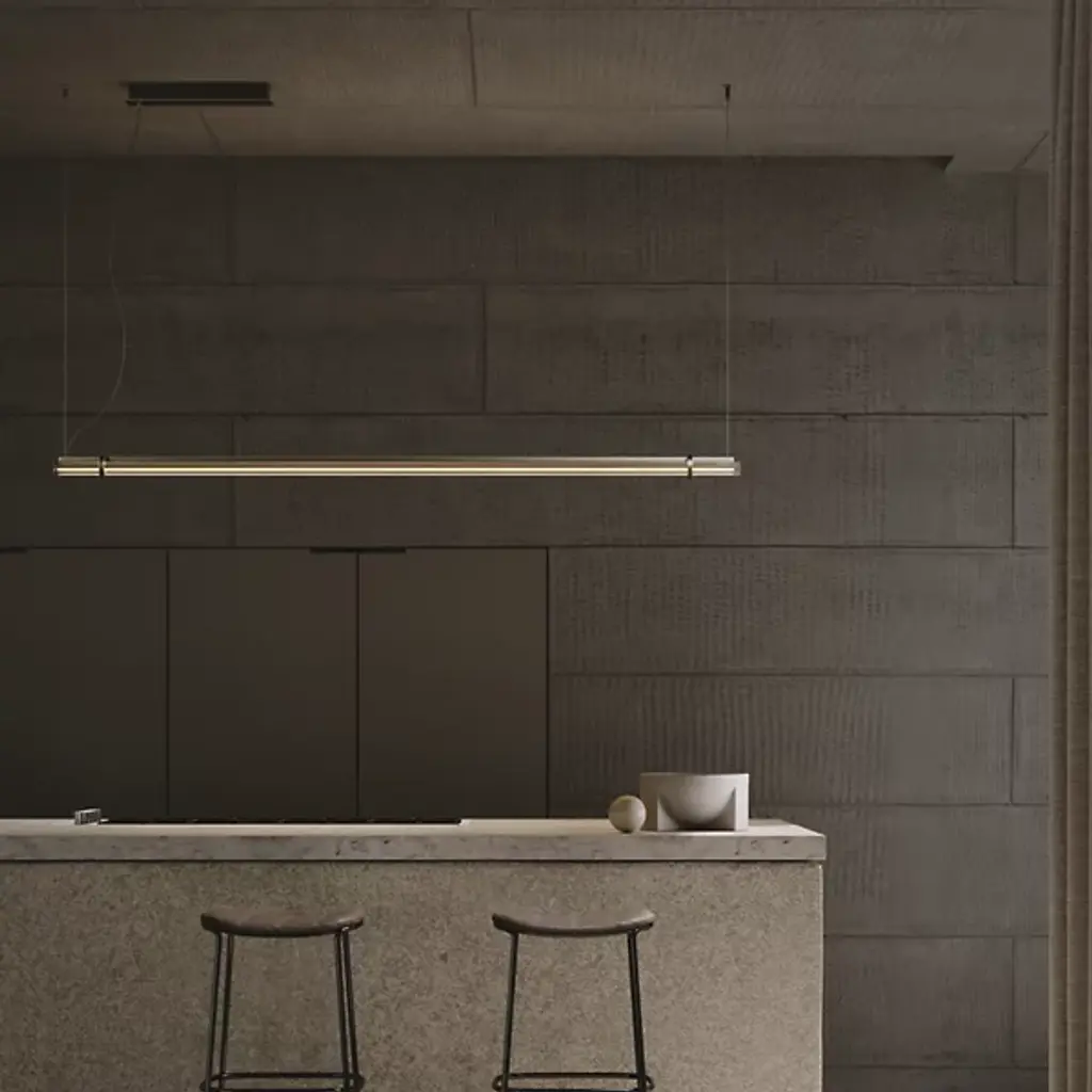 The Optical LED Linear Suspension from Venicem focuses on primary forms. Its durable brass body is complemented by exquisite Murano glass that exemplifies the excellent craftsmanship of the Italian design tradition. Rings at its ends beautifully contrast the ridges of the framework for a luxurious touch. Optical is illuminated by an integrated LED that is dimmable when paired with a TRIAC dimmer. Your light fixture is adaptable to sloped ceilings for your convenience.