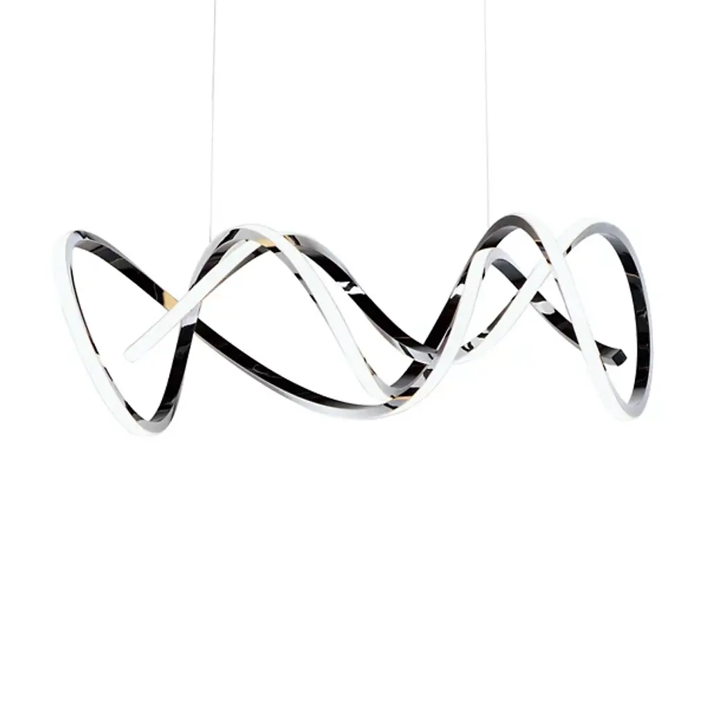 Let your indoor décor shine under the sculptural swirls of the Orazio LED Linear Suspension from Huxe. An elegant contemporary fixture secured by a stepped rectangular canopy, it sends down two slender cables to support a curved strip of aluminum that swirls and sweeps through three dimensions like a stylized signature suspended in midair. This section seats continuous LED lamping inside it, with excess glare gentled by an acrylic diffuser into an appealing glow that sparkles off the sleek surfaces around it.