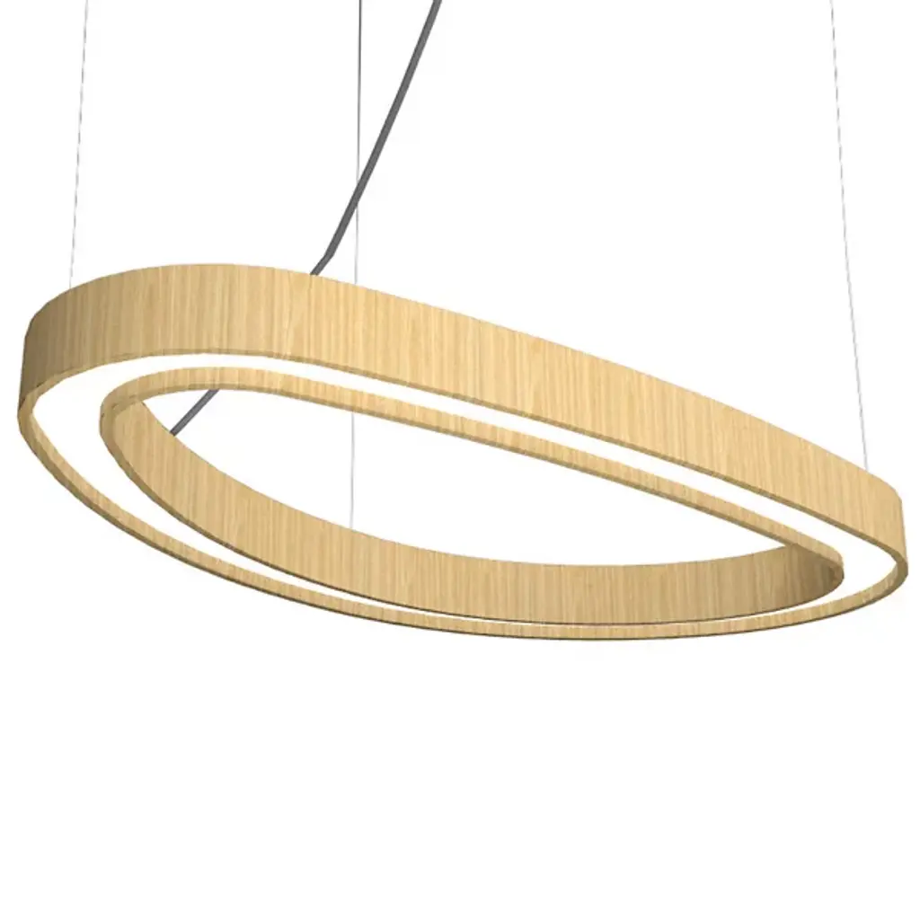 Allow the décor of your modern home to stand out with the unique and eye-catching shape of the Organic 291 LED Linear Suspension from Accord Lighting. Hanging from a set of thin wires, this modern piece showcases a unique silhouette formed from MDF with a natural wood veneer. The smooth sides turn gracefully, creating an abstract shape. A layer of acrylic on the underside houses a set of five bulbs that emit an even and bright layer of light.