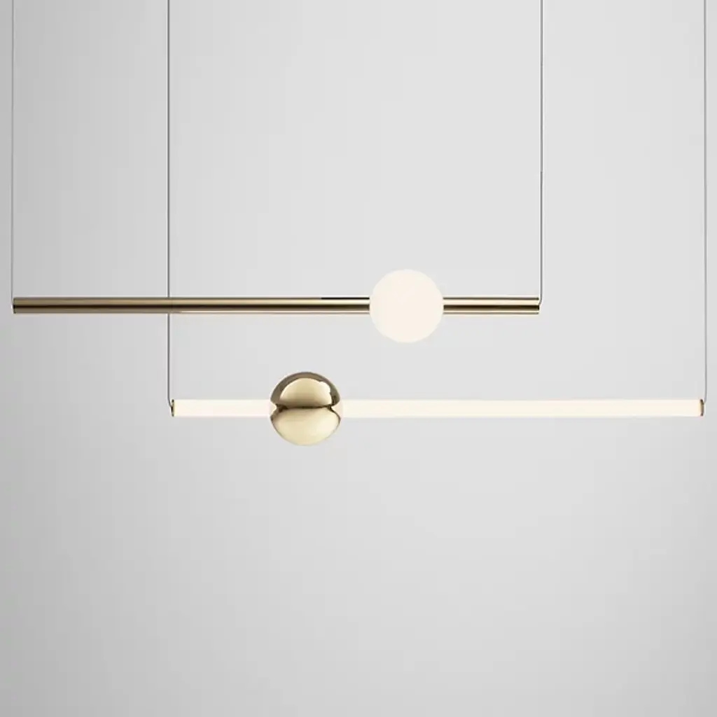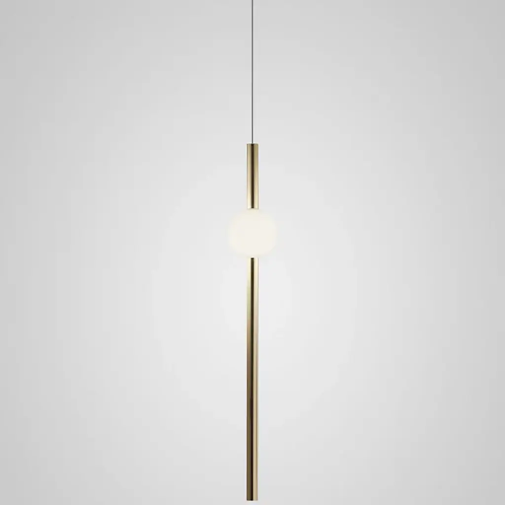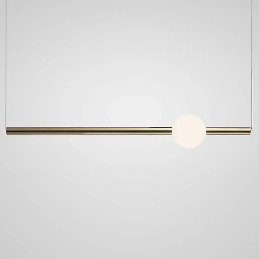 The Orion Globe Linear Suspension by Lee Broom brings a sleek, upscale ambiance to modern interior settings. Its minimalist, tubular body is made of Solid Gold with an off-center Opal Glass spherical shade. Once lit, integrated LEDs emanate through the shade, providing a soft, yet robust coverage of the surrounding space. Additional fixtures can be connected both vertically and horizontally for an entirely unique look and lightscape.