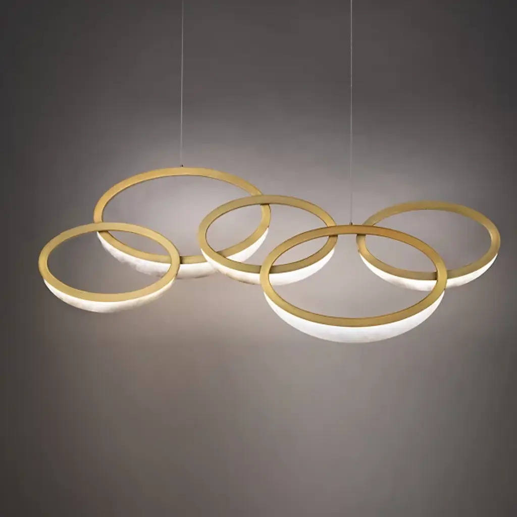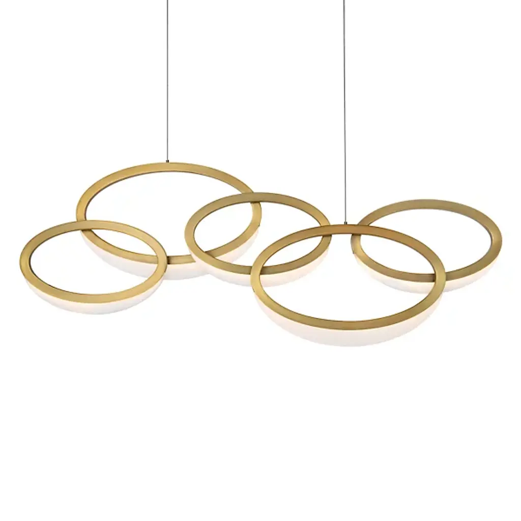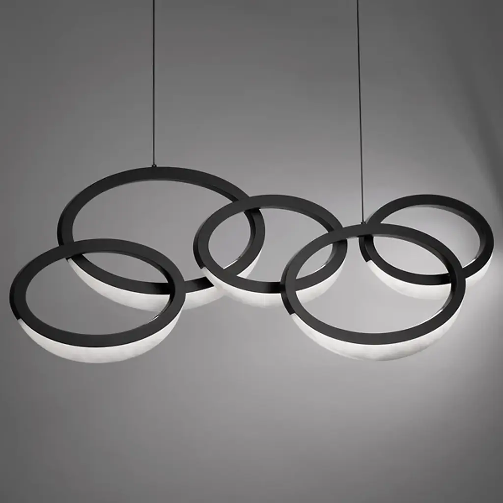 Bring a touch of artful elegance to your decorative setting with the Orion LED Linear Suspension by Modern Forms. Interlocking rings with smooth Spanish alabaster diffusers make this elaborate luminaire well-suited for open interior spaces. Each ring casts an array of ambient light, enhancing the visibility of your surroundings while delivering an unforgettable silhouette.