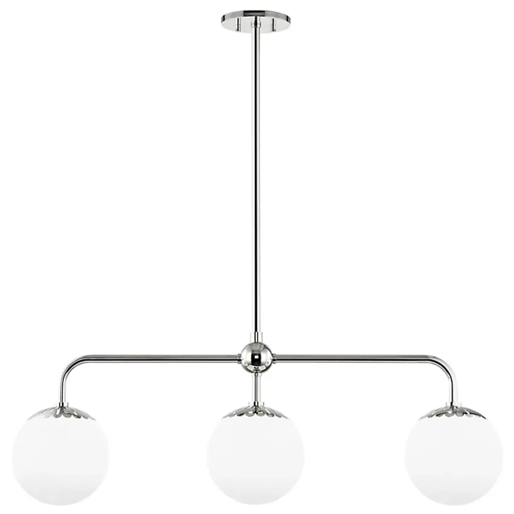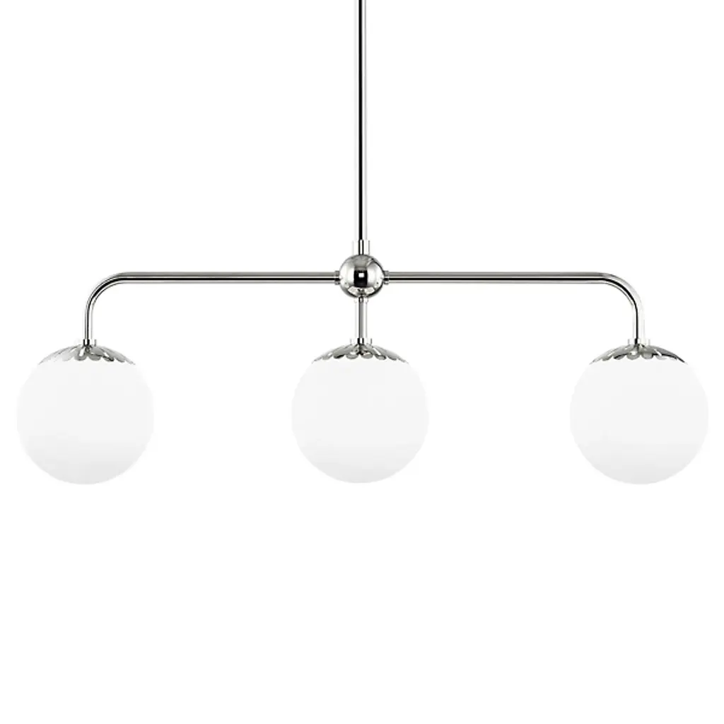 Overhead lighting thrives on strong symmetry, and the Mitzi Paige Linear Suspension delivers symmetrical appeal in spades. Three Opal Glossy Glass shades are spaced along a simple Steel bar which connects to the ceiling via a long stem. The balance of the curved shades and smooth body creates an understated elegance for your kitchen or dining room.