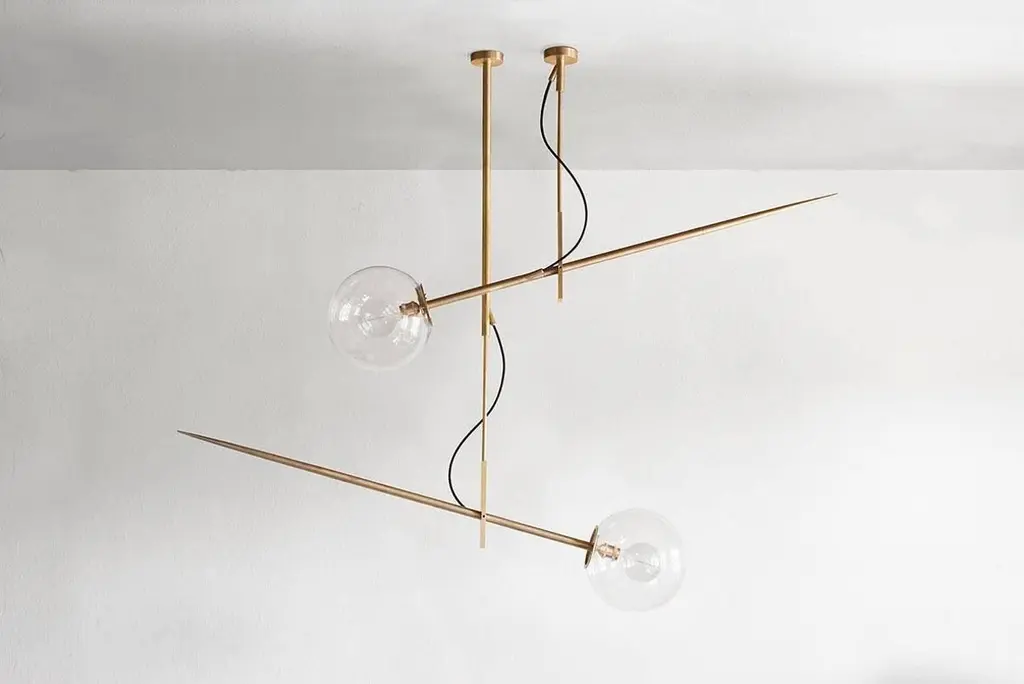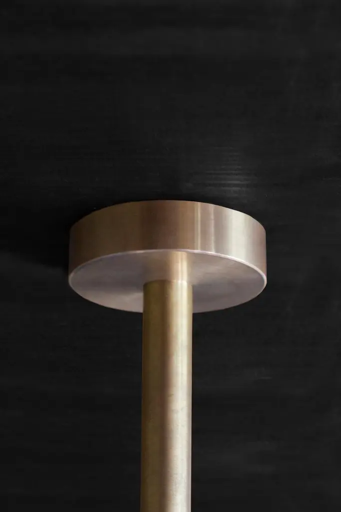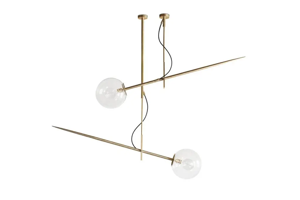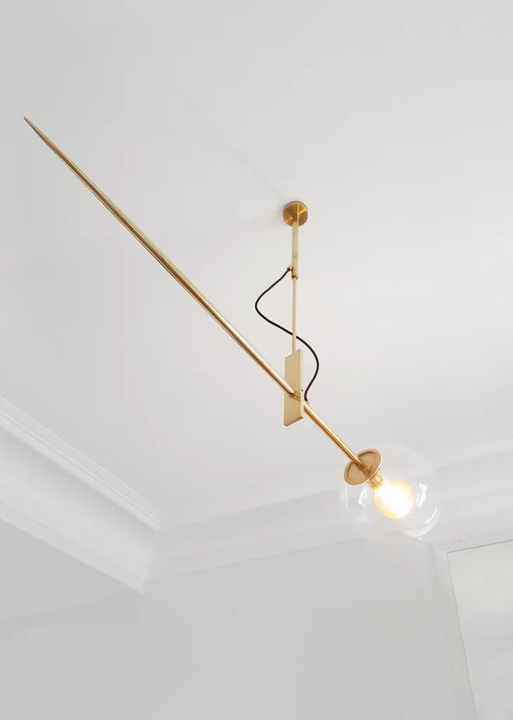 Pair of Sculptural Hasta Brass Hanging Lamps with Glass Shade by Jan GarncarekBrass ceiling lamp with a glass shade. The elements are made of full brass.The supplied cable is available in two colors, black or red. Best matches the decorative bulb.You can order the lamps of different heights.Dimensions: 78 x 120 x 30 cm and 138 x 120 x 30 cmMaterials: Brass, glass.Information: finishes: - brass (waxed)- nickel coating- copper coating- age brassweight:6 kg / 13 lbvoltage: 120V, 240Vlamping:1 x E27 dimmable, 60W, 50-60Hzlumens: 800 Imkcolortemperature: 2700 Ktightness class: IP 21certificates: CE approved, RoHSThe first of the lamps designed by Jan Garncarek. It refers to white weapons. Weapons were always present in the designer's family home. The designer was inspired by a story from his childhood when he was staying at his grandfather's house. Late one evening, the phone rang at home. It turned out that a burglar alarm had gone off at the neighbor's house, which automatically made such calls. Jan Garncarek's grandfather then took out a flute (a sword) and went to deal with the burglar. However, he escaped. The lamp is supposed to relate to a spear with which one could defend oneself in case of need. In fact, the elongated part of the lamp is not so easily removable, serving more as a symbol.Jan Garncarek is an important contemporary designer, graduated from the Academy of Fine Arts in Warsaw. He gained extra qualifications at Politecnico di Milano. He has acquired professional experience in the Design Society. He took part in projects such as: Design of visual information for the Museum of the History of Polish Jews, interior design project of the Polish Cultural Institute in Tel Aviv, space arrangement of the Presidential Palace of Poland, interior design project of the Polish Embassy in Berlin and Skopje, Modernization of the Malachowski's Square in Warsaw. His process of designing is the state of researching, discovering and being curious of the world, making insightful observations and drawing sensible conclusions.All our lamps can be wired according to each country. If sold to the USA it will be wired for the USA for instance.