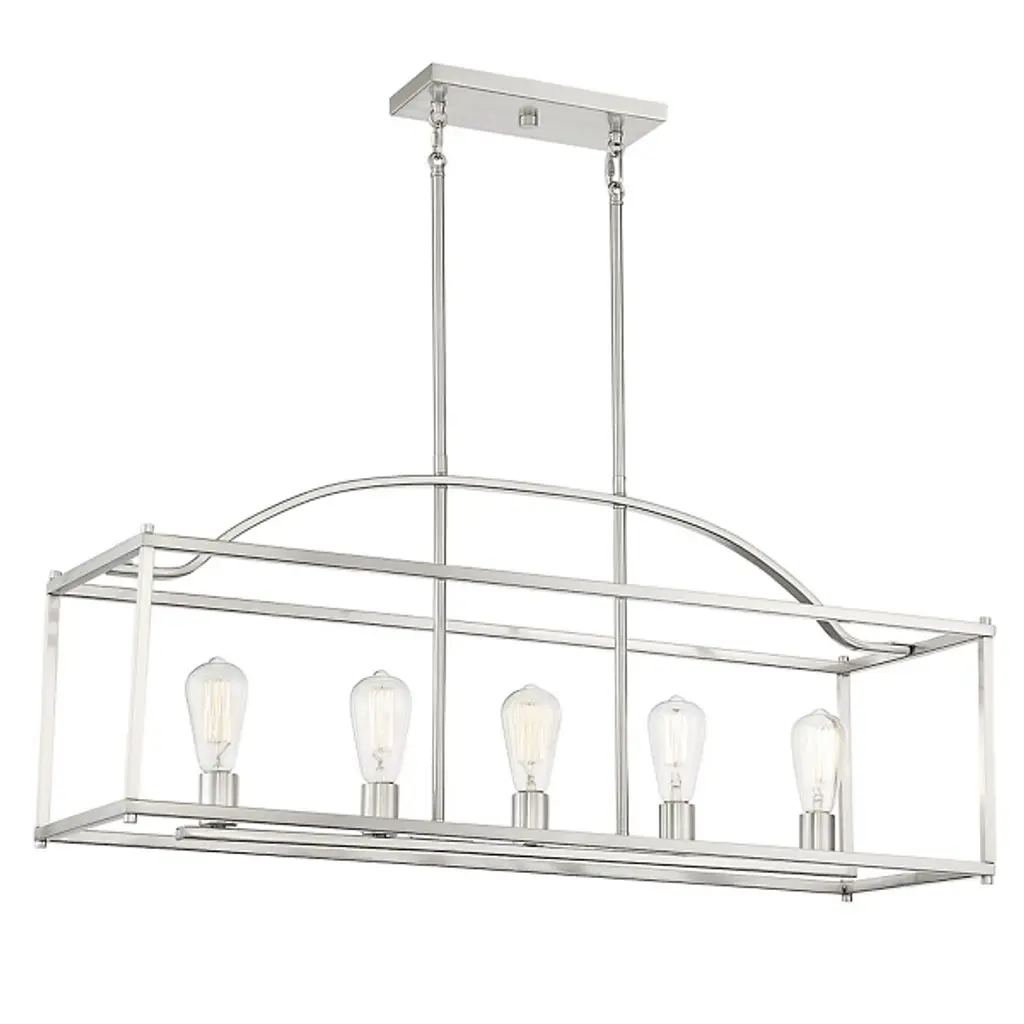 Sleek and minimalist, the Palladian Linear Suspension from Savoy House shapes the décor of your home with a clean silhouette. Made of smooth metal throughout, this piece hangs from the ceiling by a pair of thin and ling downrods. The downrods lead to an open, rectangular frame that houses a linear arrangement of crisp bulbs. Each of the bulbs introduces a bright and full glow that evenly spreads throughout the surrounding space.
