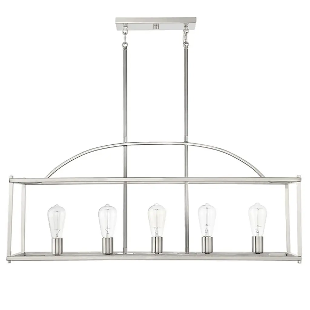 Sleek and minimalist, the Palladian Linear Suspension from Savoy House shapes the décor of your home with a clean silhouette. Made of smooth metal throughout, this piece hangs from the ceiling by a pair of thin and ling downrods. The downrods lead to an open, rectangular frame that houses a linear arrangement of crisp bulbs. Each of the bulbs introduces a bright and full glow that evenly spreads throughout the surrounding space.