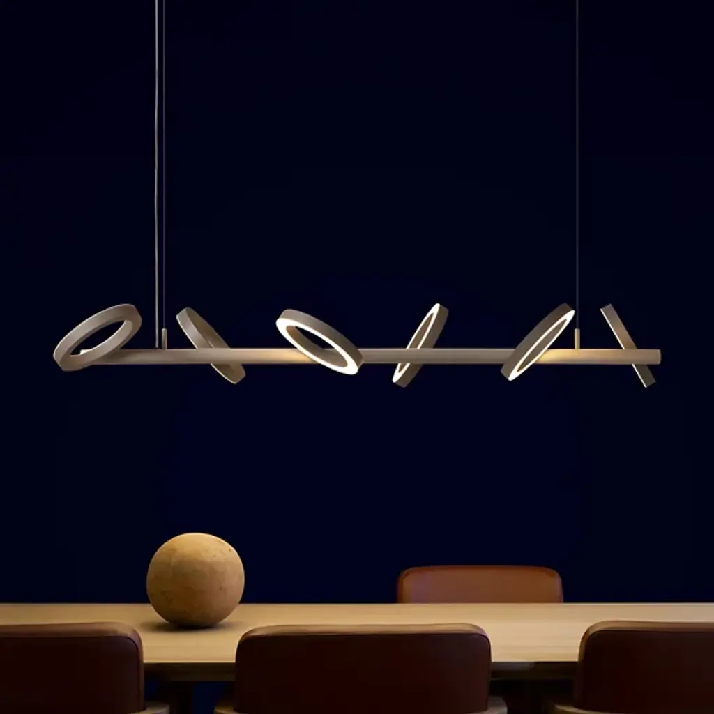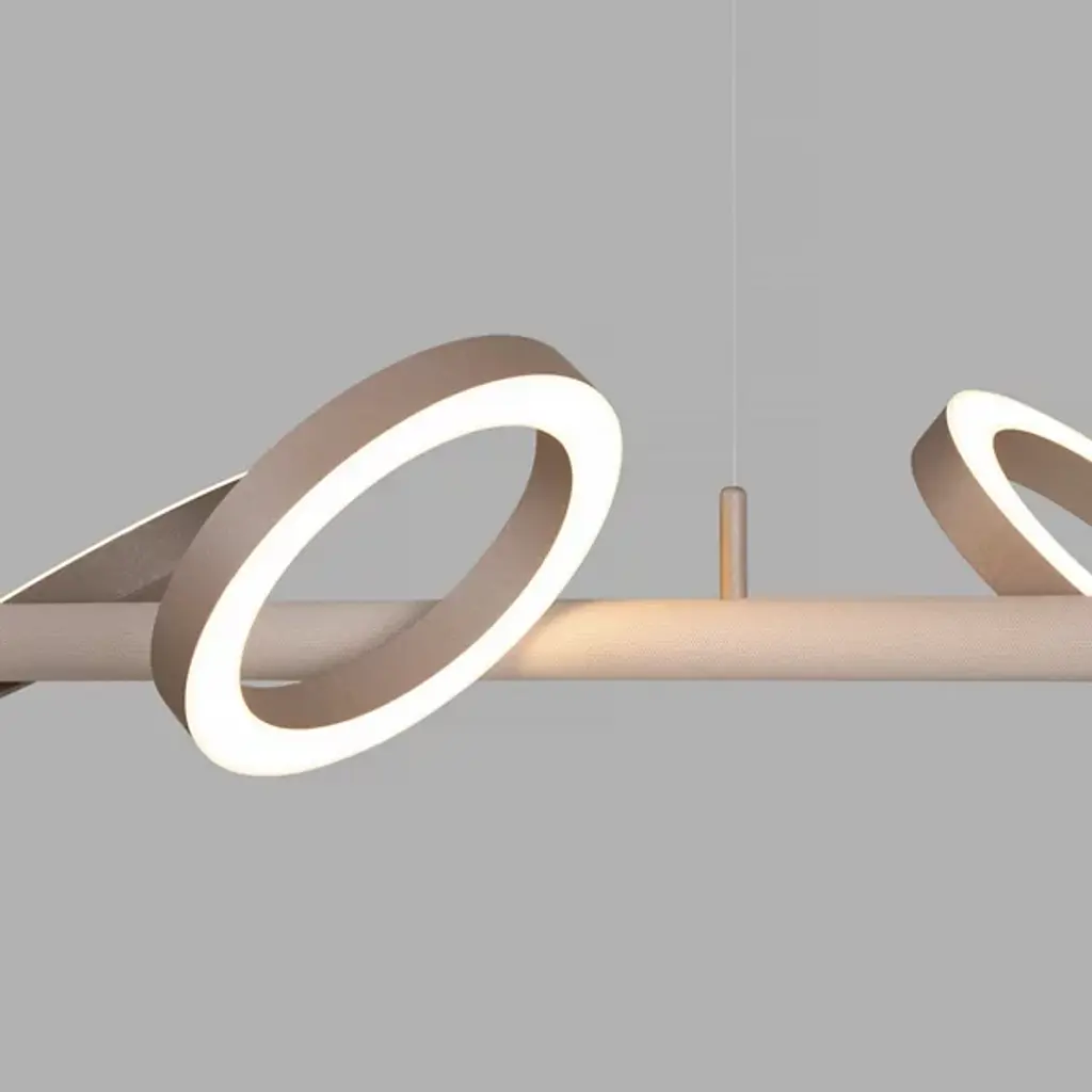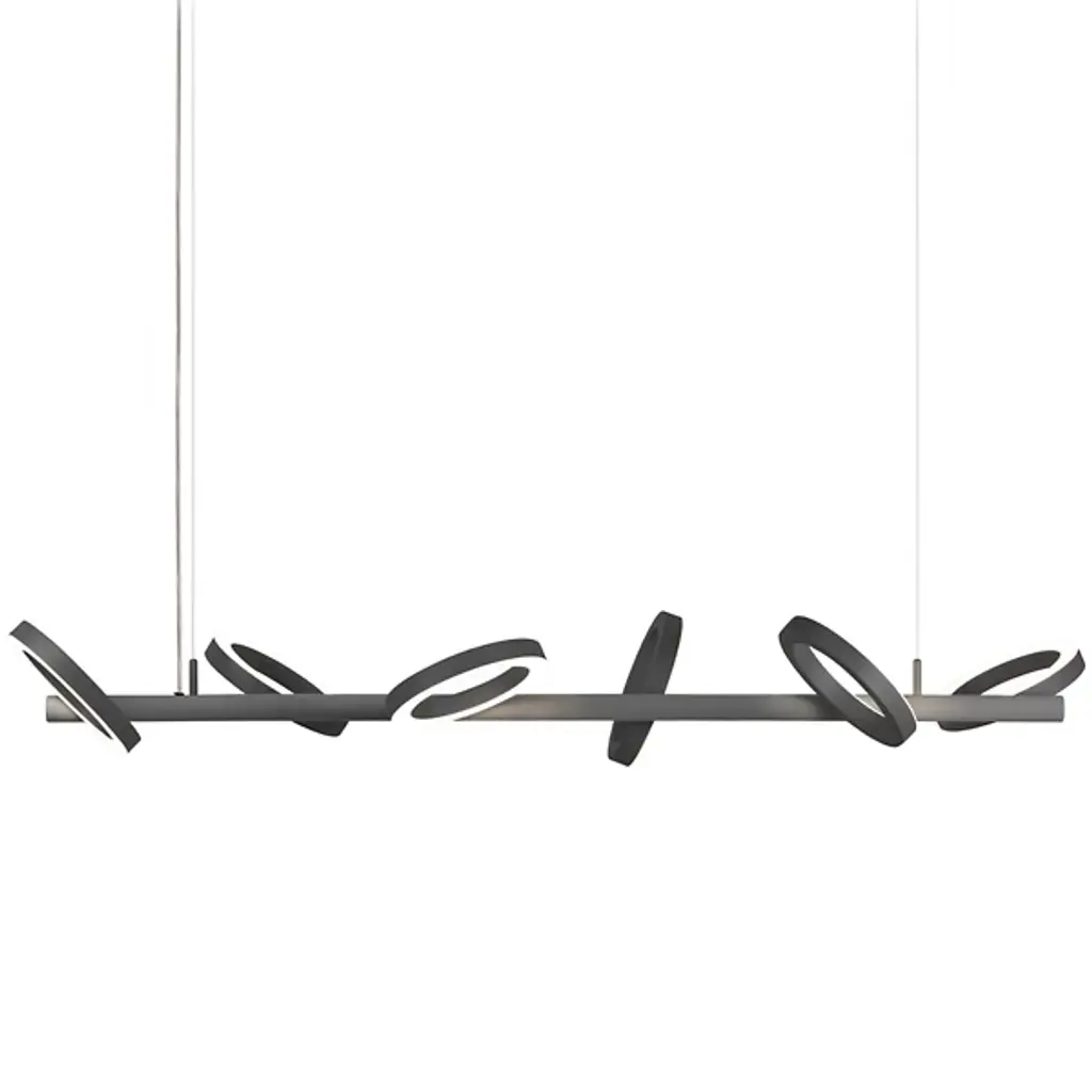 Artful and elegant. The Pallana LED Linear Suspension by Moooi gives your home décor a contemporary appearance. This linear suspension is created by IDEO. Your linear suspension is designed with playfulness in mind. The eye is drawn to the powder-coated aluminum rings, which encircle a fine metal tube. This tube boasts a knotted fabric sleeve, bringing a sense of intricacy to your decorative piece. Effortlessly spin the rings to direct the light where you wish.