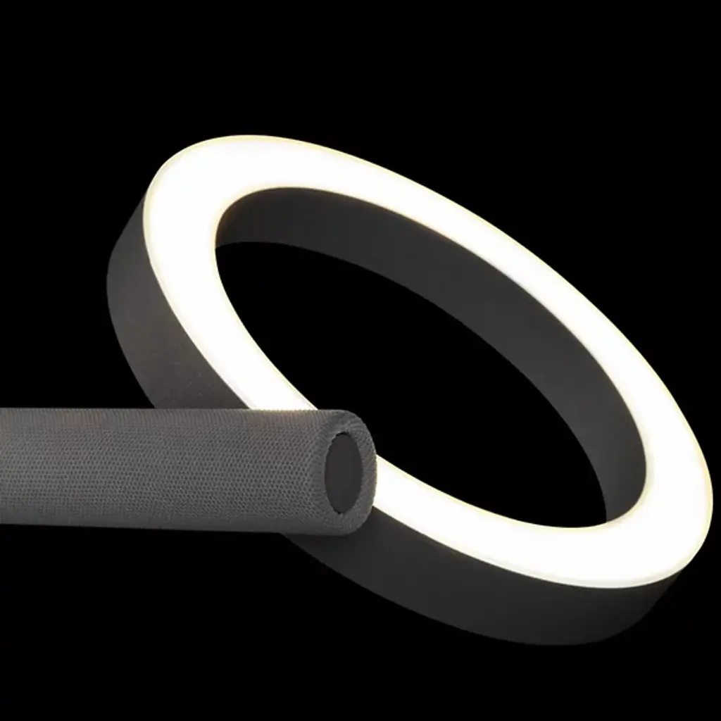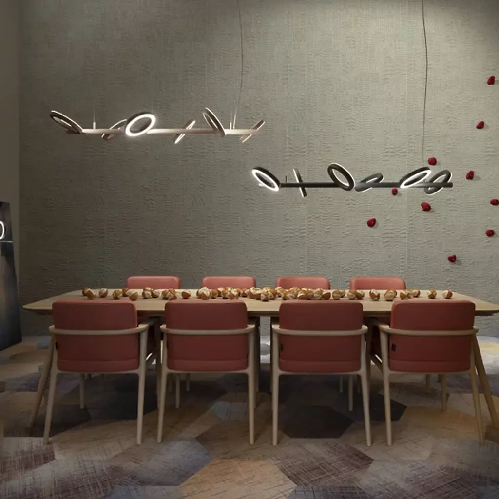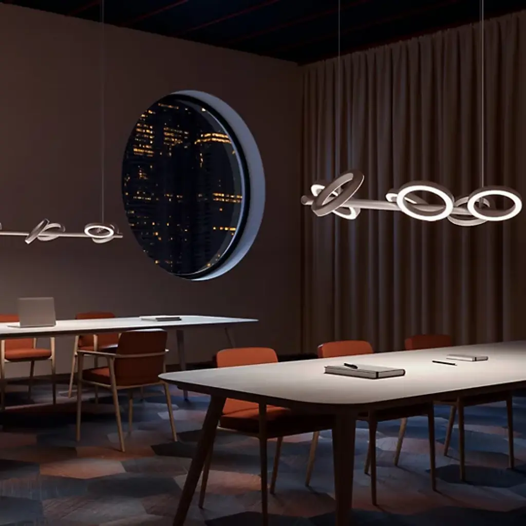Artful and elegant. The Pallana LED Linear Suspension by Moooi gives your home décor a contemporary appearance. This linear suspension is created by IDEO. Your linear suspension is designed with playfulness in mind. The eye is drawn to the powder-coated aluminum rings, which encircle a fine metal tube. This tube boasts a knotted fabric sleeve, bringing a sense of intricacy to your decorative piece. Effortlessly spin the rings to direct the light where you wish.