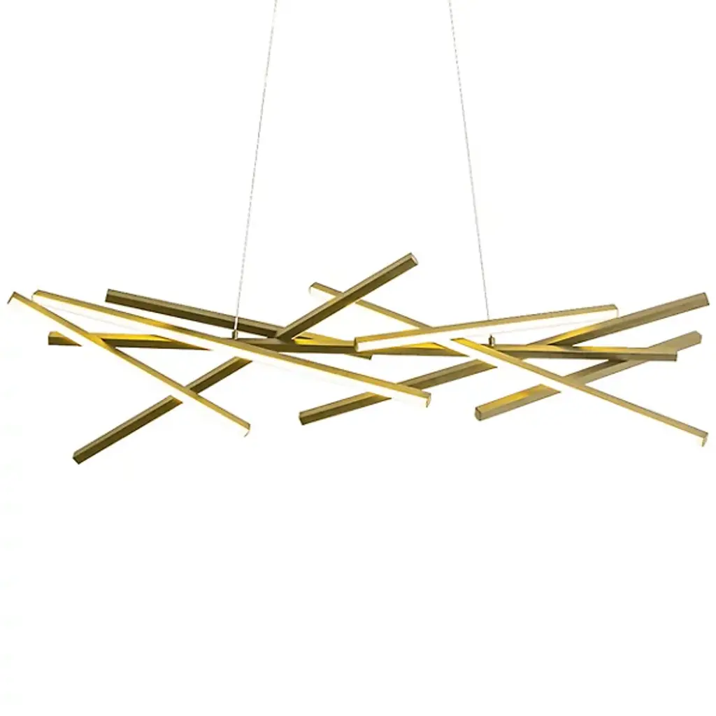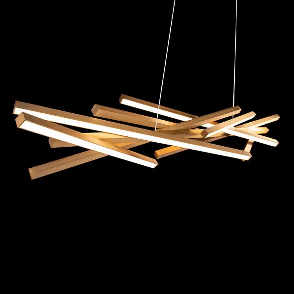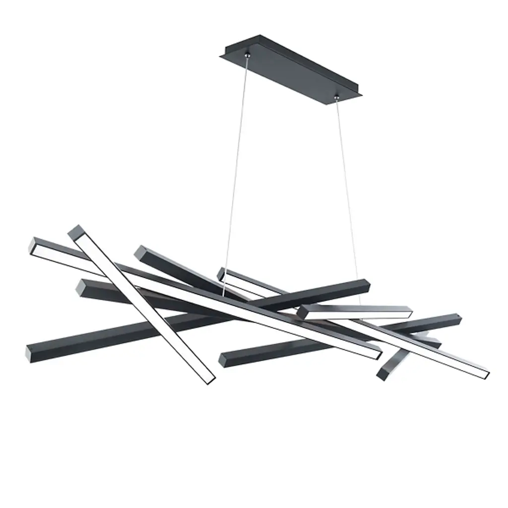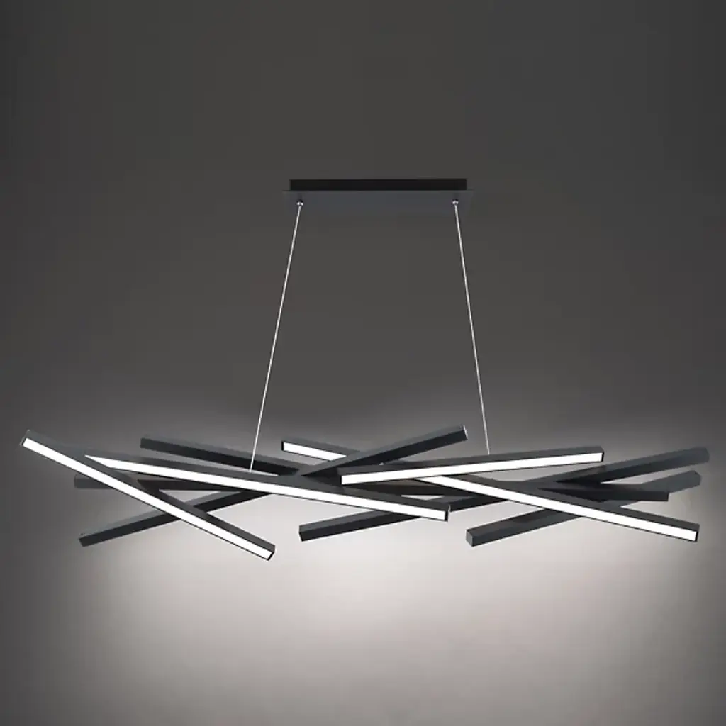 The simple line at its most beautiful and versatile. The Parallax LED Linear Suspension from dweLED is a functional work of art, suiting one’s lighting taste and ideal silhouette with adjustability options. This contemporary piece gives the room a true focal point that invites everyone to gather around. The design’s near-invisible aircraft cable suspension and low-profile canopy suggest a floating display. Seemingly erratic yet precisely arranged, slender aluminum contours cut across the air in an elegant bundle. LEDs and diffuser lenses complete the contours to create a bright aura that enhances the drama of the dynamic composition.