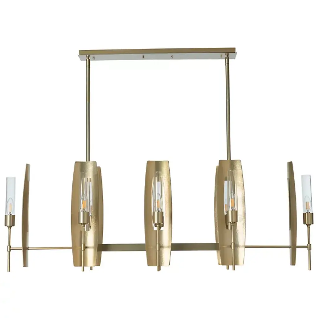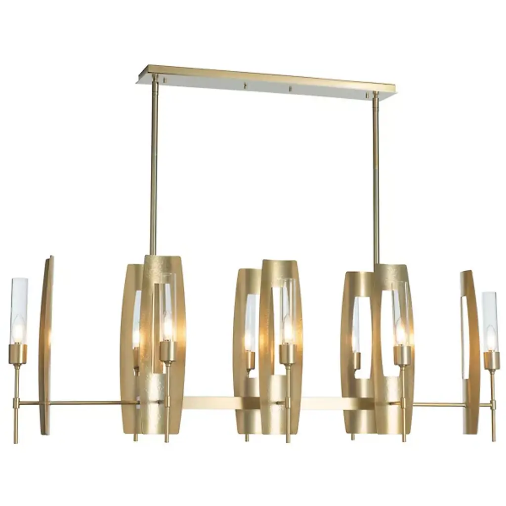 Introducing the Passage 8-Light Linear Suspension, a subtle yet striking addition from the Hubbardton Forge Family Collection. In keeping with the transitional theme, this fixture exemplifies master craftsmanship employing both steel and glass as its primary materials. The pendant encapsulates a linear light fixture shape, predominately adorned by a stunning cylinder-shaped glass shade. Designed to be hardwired into your home, the Passage Pendant offers a versatile addition to various rooms in your household such as your living room, hallway or home office.