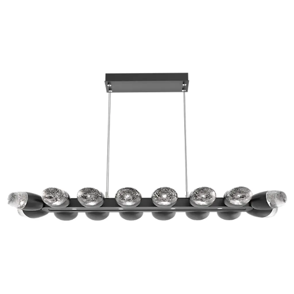 Hammerton Studio presents the Pebble LED Linear Suspension. Ideal above dining and game tables, this artful linear chandelier design sets an elegant tone with a beautifully finished, precision-machined metalwork. Softly illuminated rondelles of artisan cast glass handcrafted in Hammerton's glass studio delight in their shimmering properties. The glass housings can be positioned at preset angles to help create a dynamic, spacious glow.