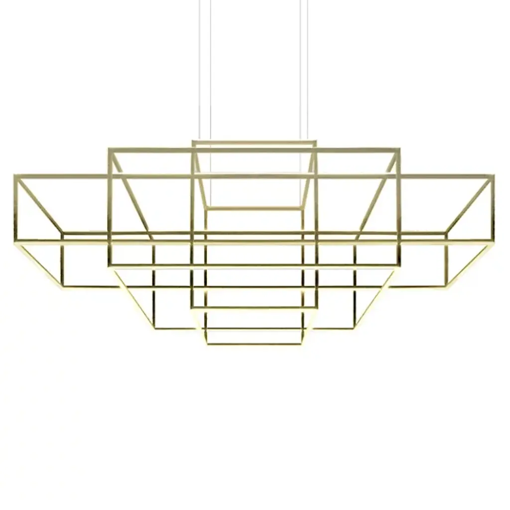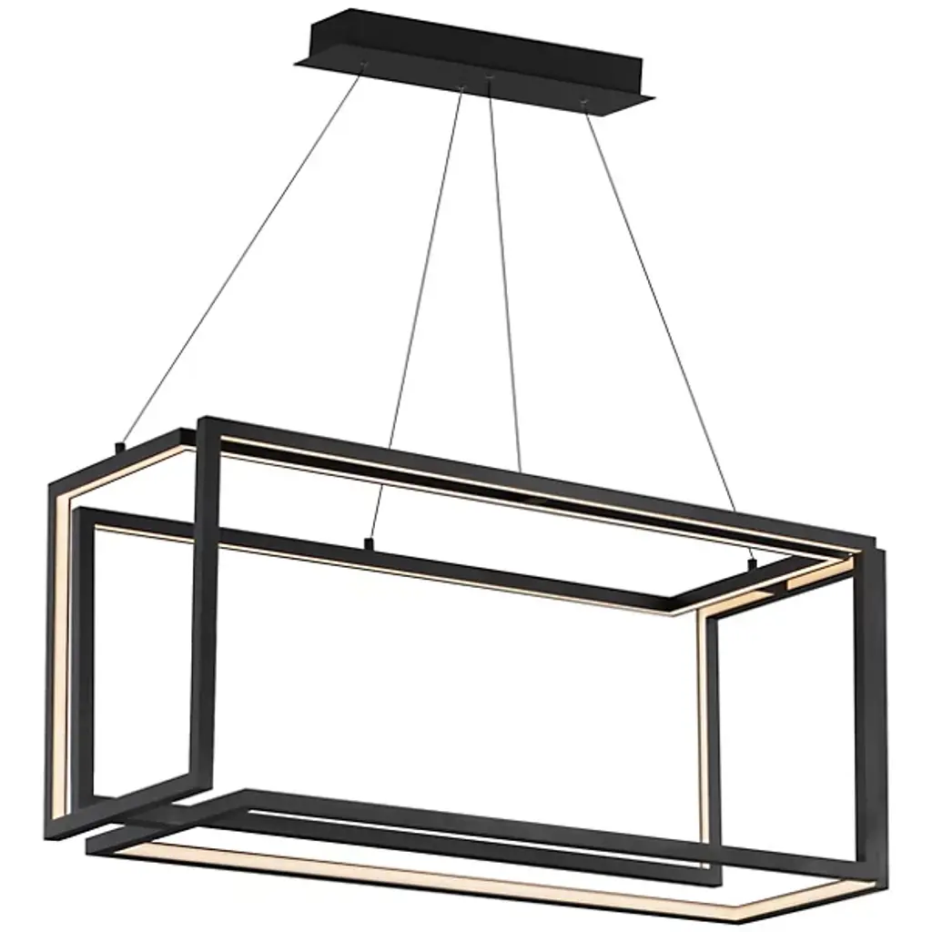 A cubist work of art. The Penrose LED Linear Suspension from ET2 Lighting carefully calculates the structural form of a cube space when corners do not meet. The lattice of this shape is emphasized by its dedicated LED light source housed within aluminum channels and then cast in various directions. This fixture is a feat of human engineering in design, translating a mathematical challenge into a sculptural work of art with the function of delivering light to interior spaces.