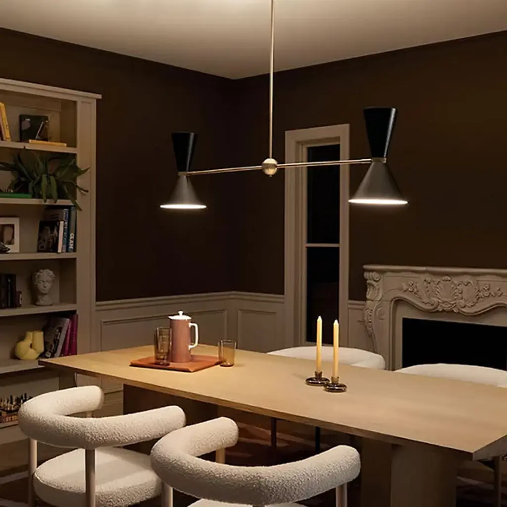 The Phix Linear Suspension by Kichler showcases a clean, minimalistic look that can enhance any space. The fixture features a simple, linear design bookended by adjustable, conical shades. This piece is an update to classic mid-century design, and the lighting is dimmable, so you can create the perfect mood for any occasion in traditional or contemporary settings.