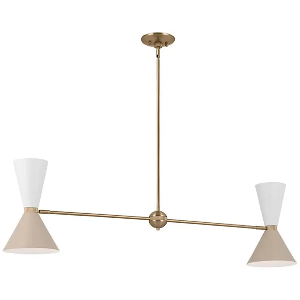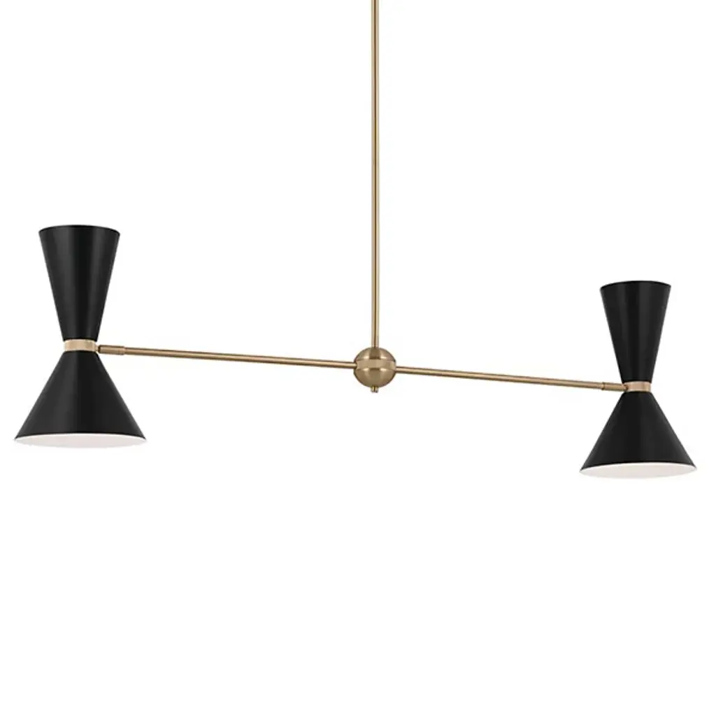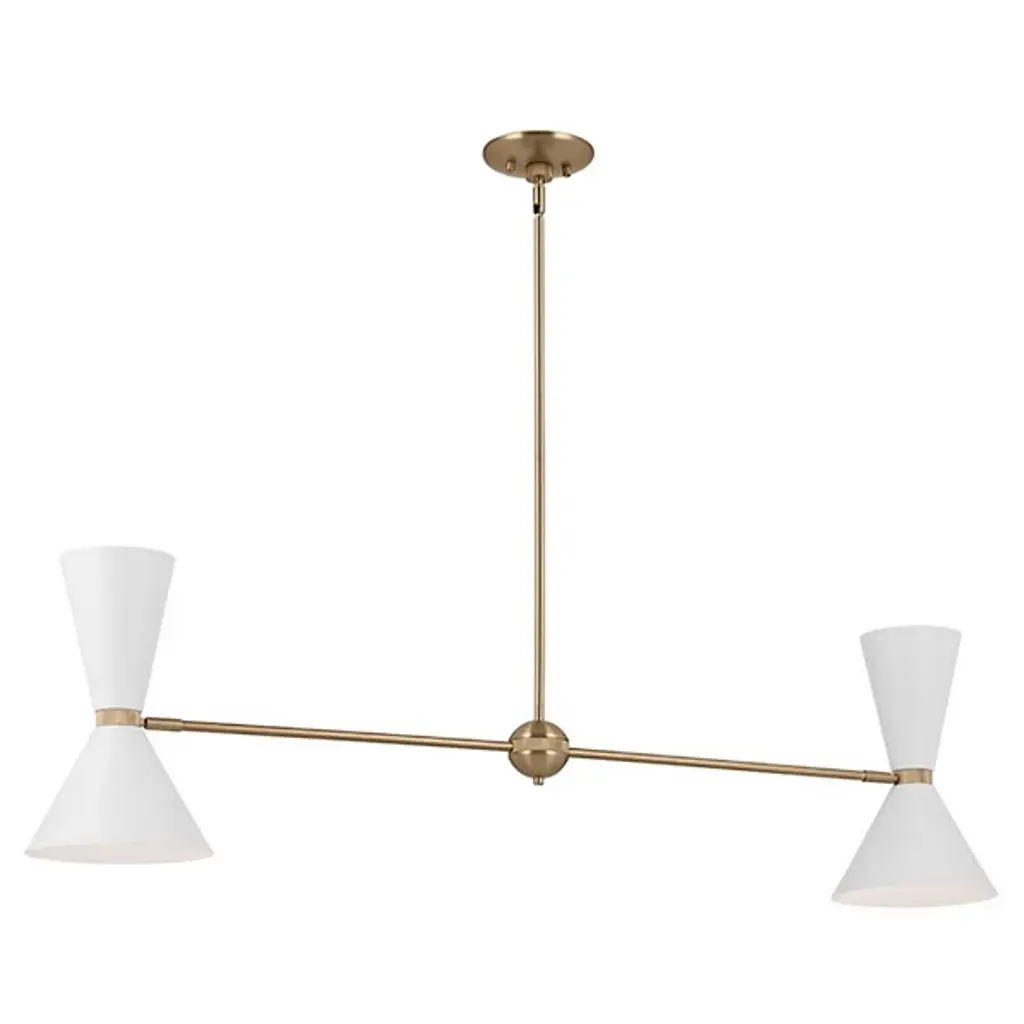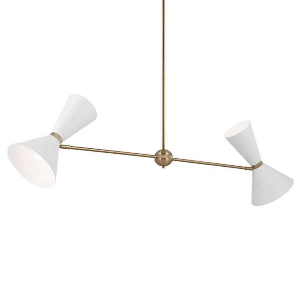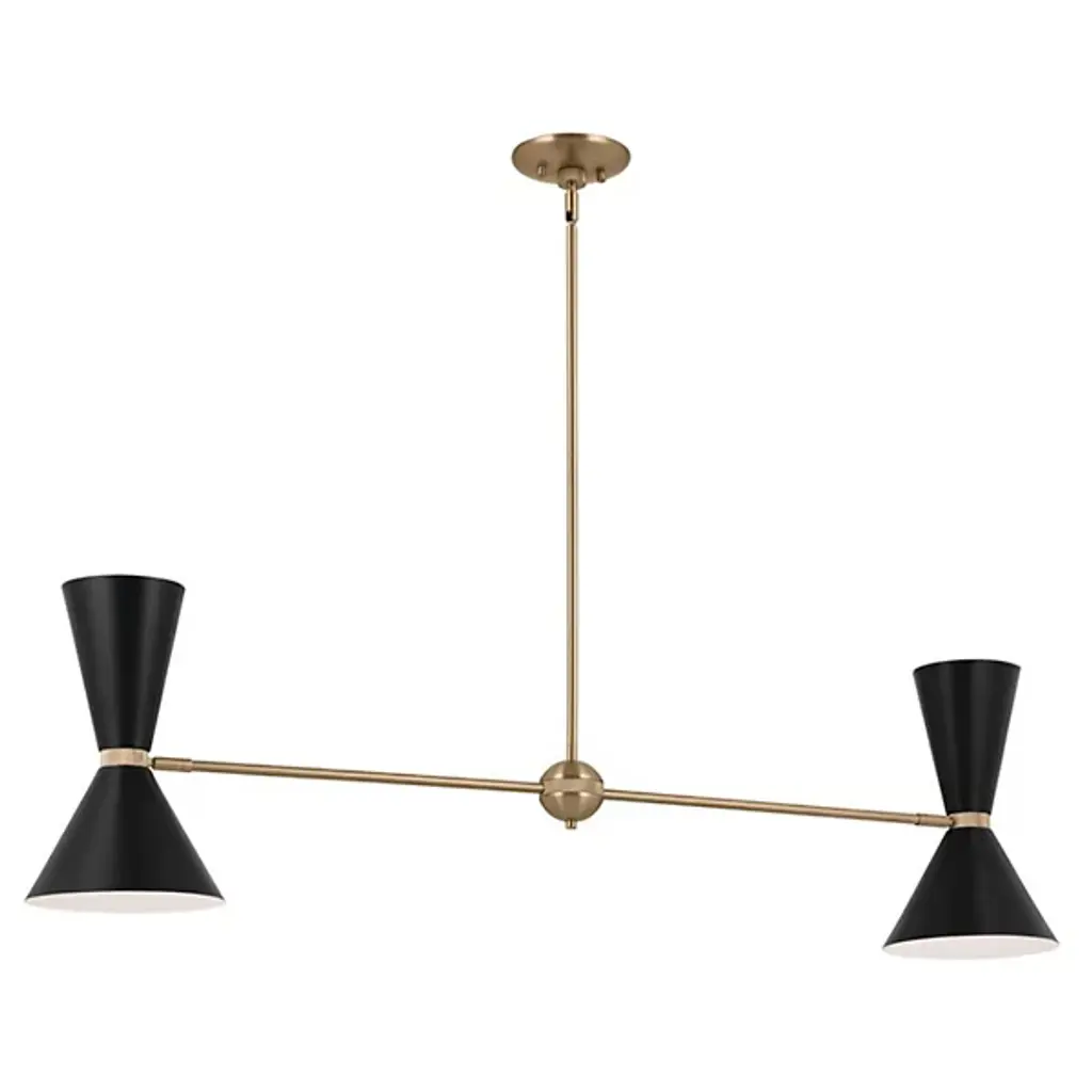 The Phix Linear Suspension by Kichler showcases a clean, minimalistic look that can enhance any space. The fixture features a simple, linear design bookended by adjustable, conical shades. This piece is an update to classic mid-century design, and the lighting is dimmable, so you can create the perfect mood for any occasion in traditional or contemporary settings.