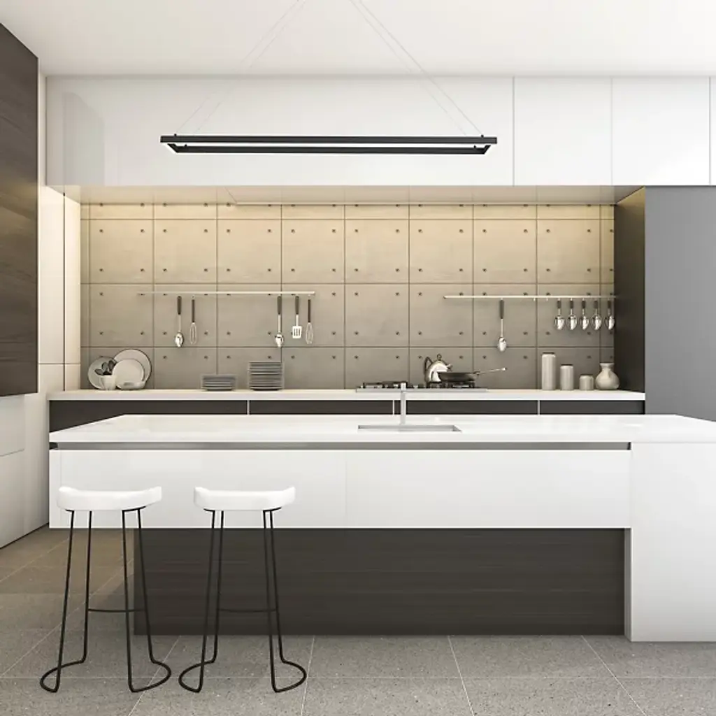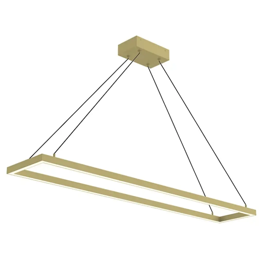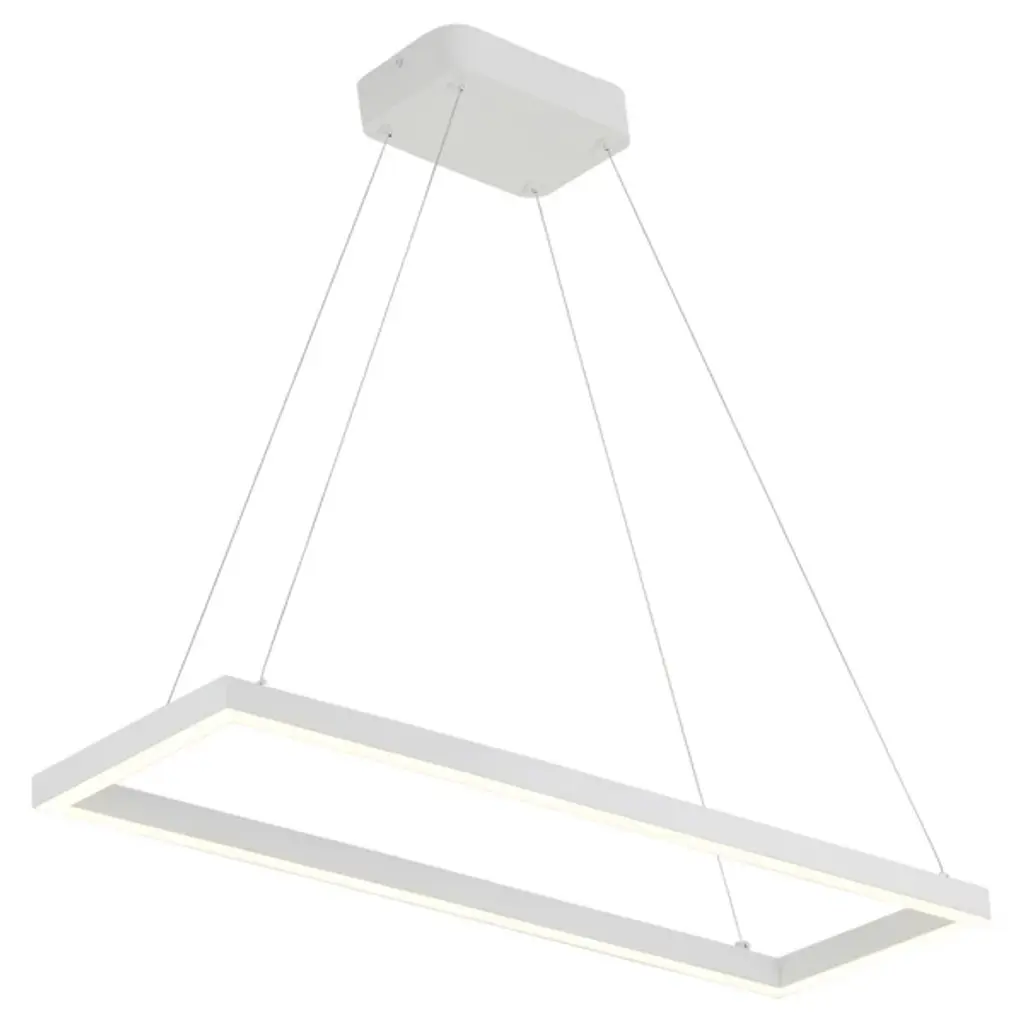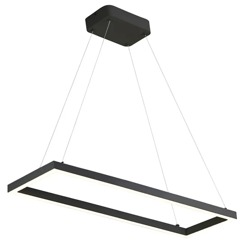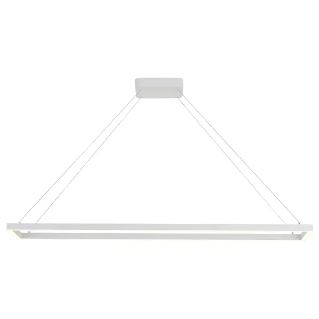 Slim design that packs a strong punch. The Piazza LED Linear Suspension from Kuzco Lighting is the ideal complement, accentuating spaces with a simple form and an open-air design. Razor-thin wiring appears as a stroke of a pencil guided by a ruler, tethered to its rectangular framework. Hidden atop the shape and silhouetted below it, neat LEDs turn on to produce a faceted down glow and an aura of pure sophistication.