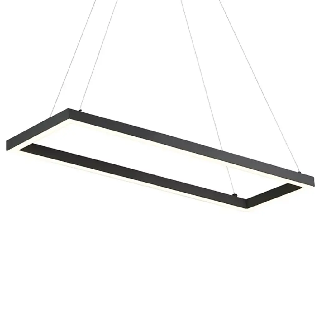Slim design that packs a strong punch. The Piazza LED Linear Suspension from Kuzco Lighting is the ideal complement, accentuating spaces with a simple form and an open-air design. Razor-thin wiring appears as a stroke of a pencil guided by a ruler, tethered to its rectangular framework. Hidden atop the shape and silhouetted below it, neat LEDs turn on to produce a faceted down glow and an aura of pure sophistication.