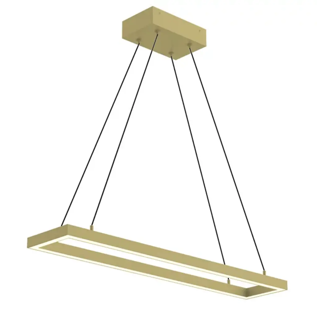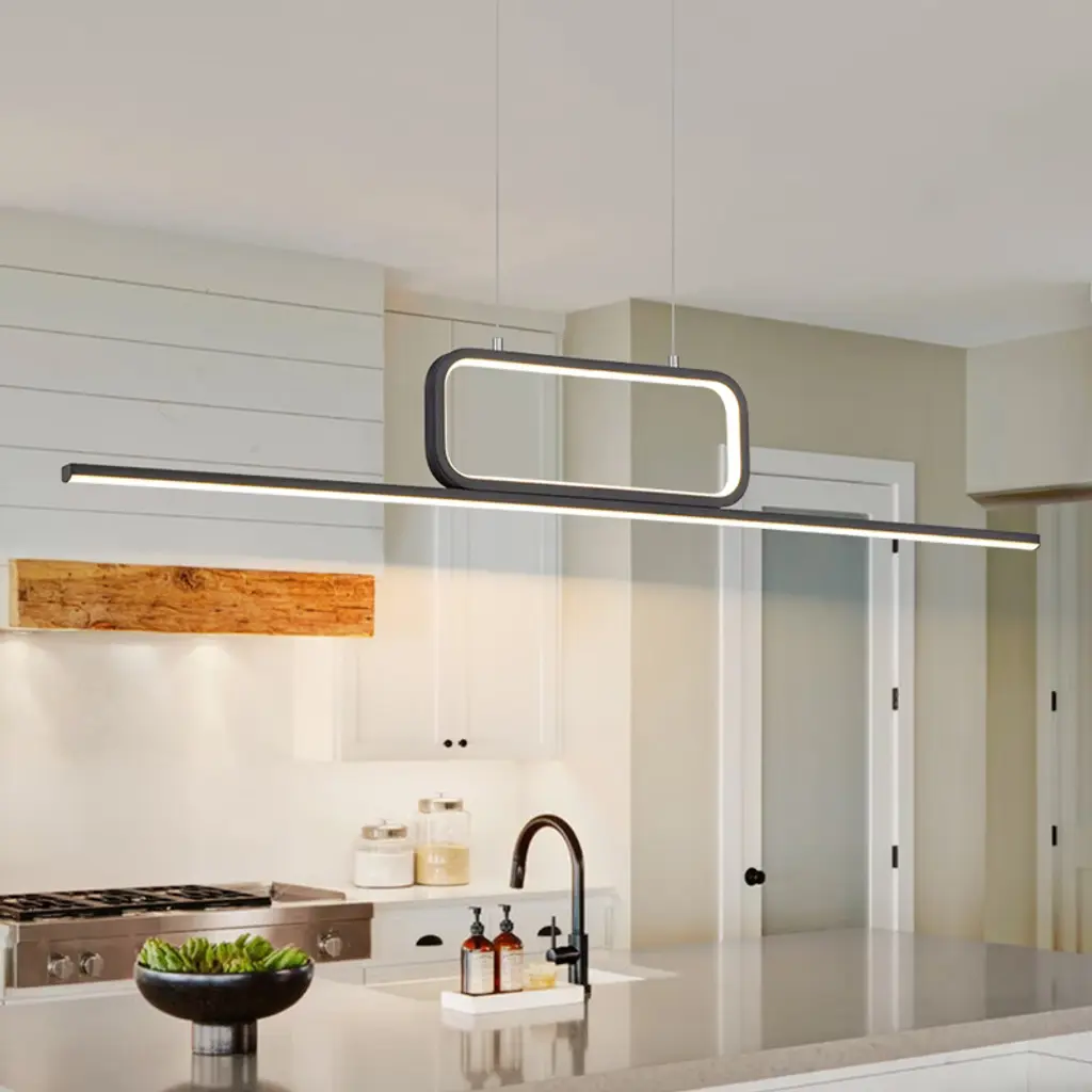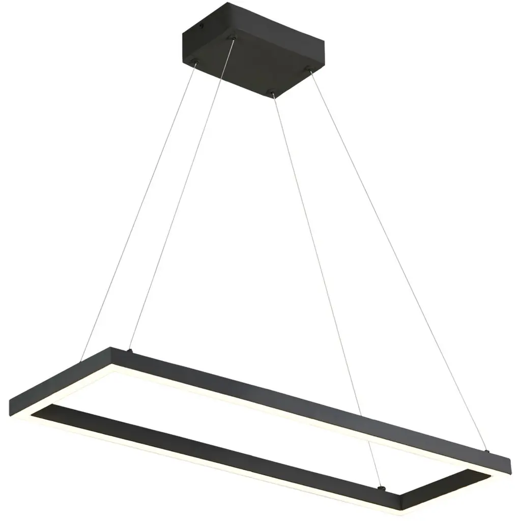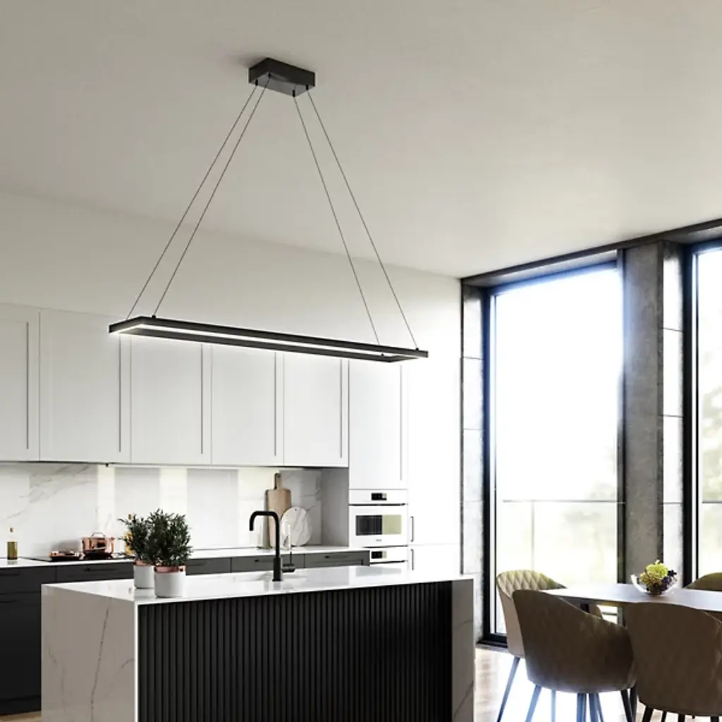Slim design that packs a strong punch. The Piazza LED Linear Suspension from Kuzco Lighting is the ideal complement, accentuating spaces with a simple form and an open-air design. Razor-thin wiring appears as a stroke of a pencil guided by a ruler, tethered to its rectangular framework. Hidden atop the shape and silhouetted below it, neat LEDs turn on to produce a faceted down glow and an aura of pure sophistication.