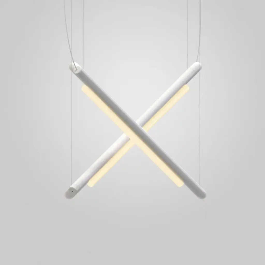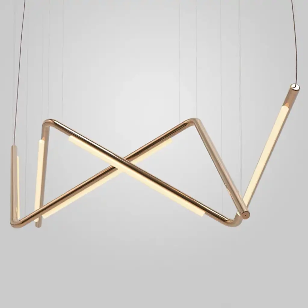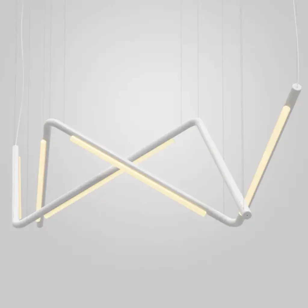 The Pipeline CM9 LED Linear Suspension by AND light is a intricate, detailed fixture that twists the pieces of aluminum around one another, creating a delicate fixture. The linear suspension light is made from both aluminum and acrylic and can be customized with a variety of colors and color temperatures. The linear suspension light creates indirect downlighting.