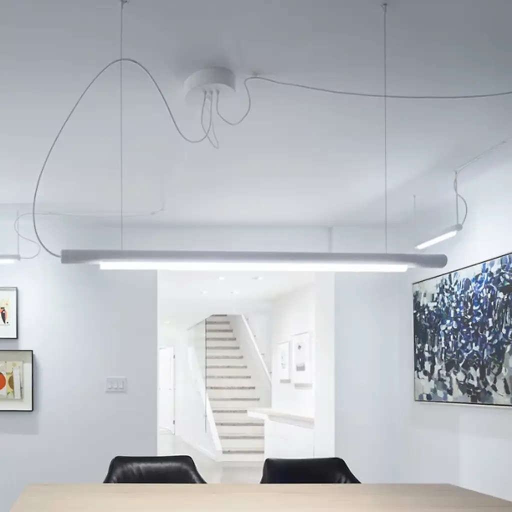 The Pipeline LED Linear Suspension from ANDlight is a statement in contemporary design with a minimalist and modular construction that allows the piece to be expanded into a range of possibilities. Designer Caine Heintzman created the fixture with the idea of practicality and versatility: practicality in lighting, stressing the importance of the piece’s soft uniform glow, produced by its LEDs and tubular diffuser; and versatility through its sleek, aluminum body which can be tethered with other straight curved fixtures from the Pipeline series.