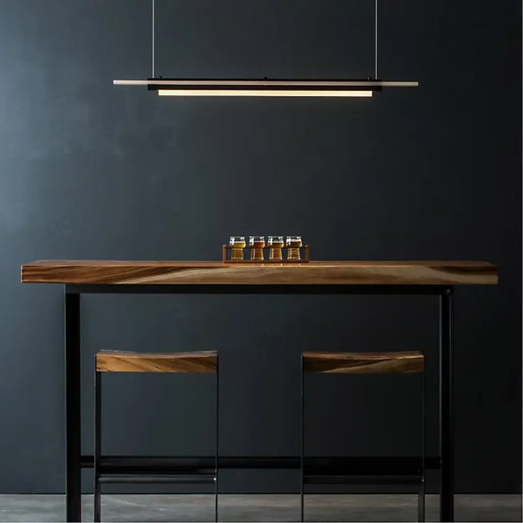 Smooth and sleek in design, the Plank LED Linear Suspension from Hubbardton Forge will have you saying, “Plank you very, very much!” Its sturdy structure is comprised of Steel and Wood, creating an industrial modern contrast. Its up and down lighting allow for ample illumination, making it a great option for display over a bar, dining room table, or kitchen island. Each piece from Hubbardton Forge is made to order by skilled artisans in Vermont.