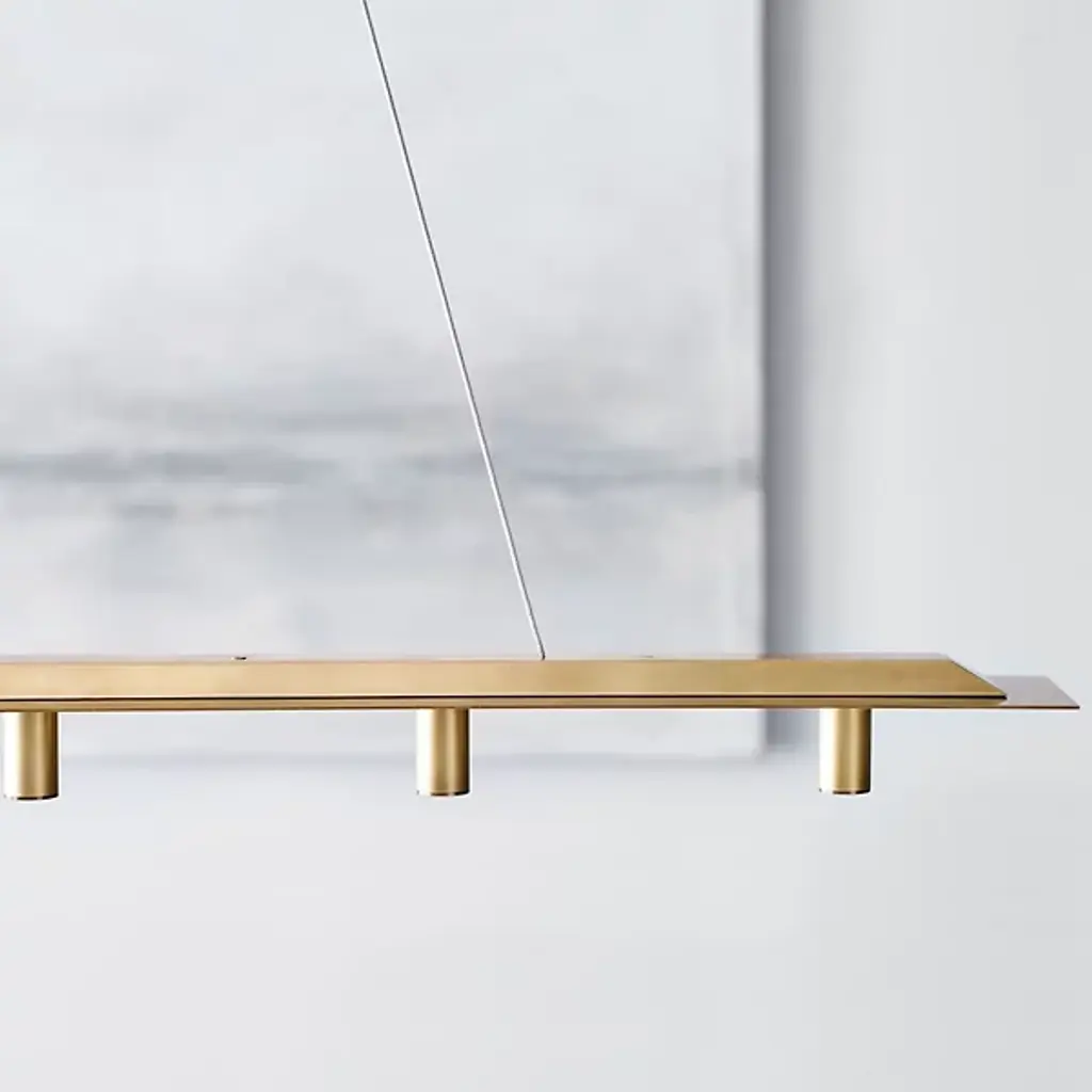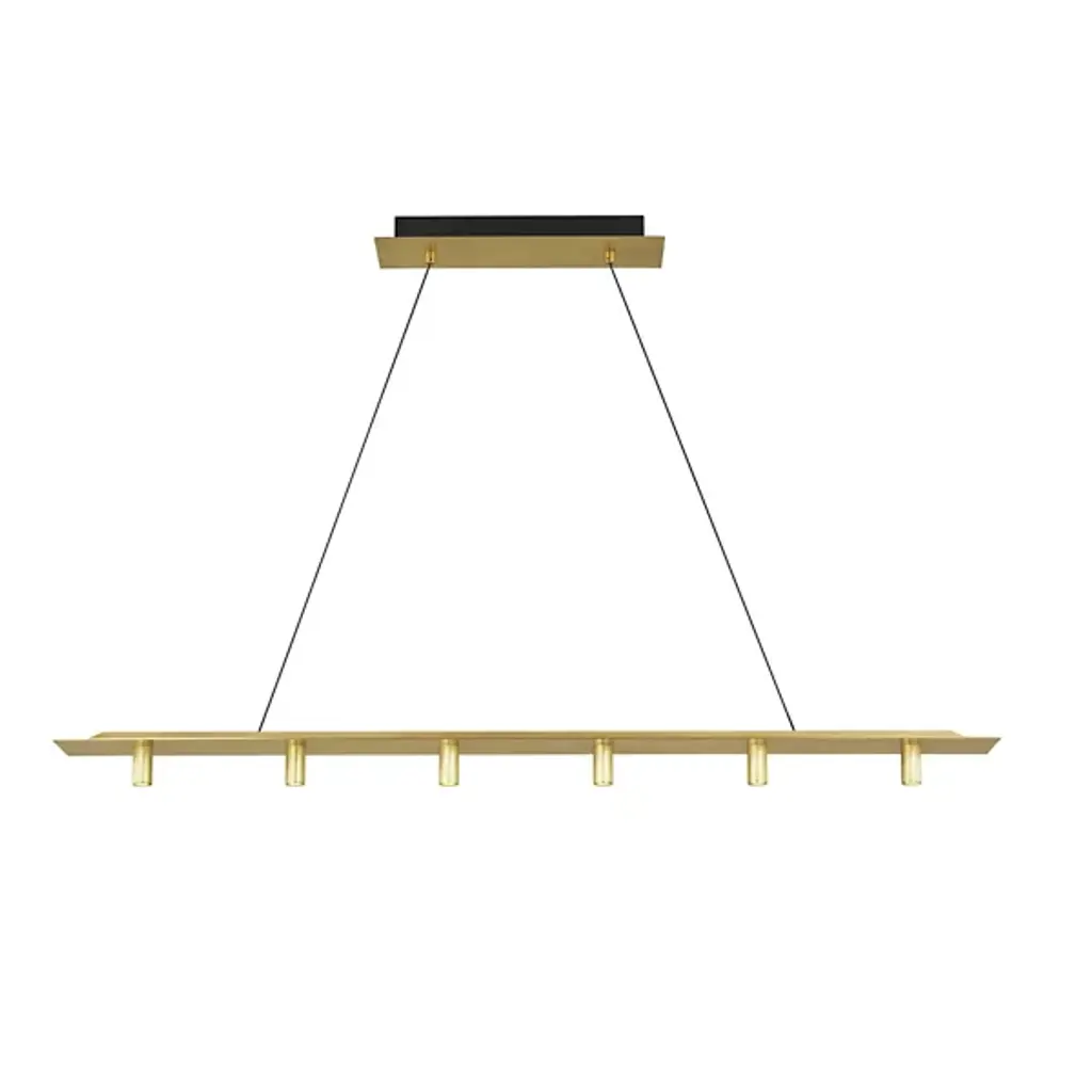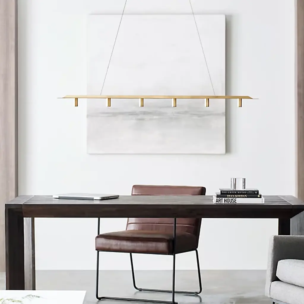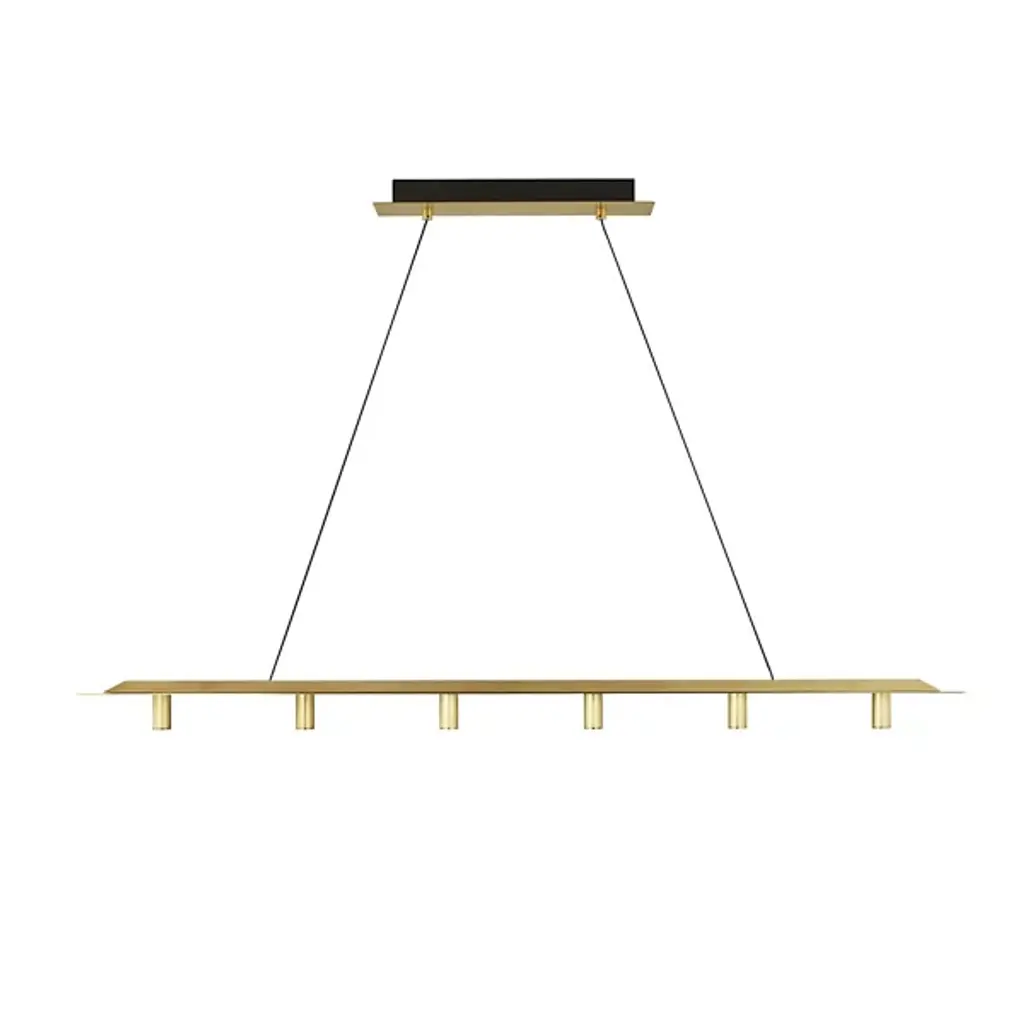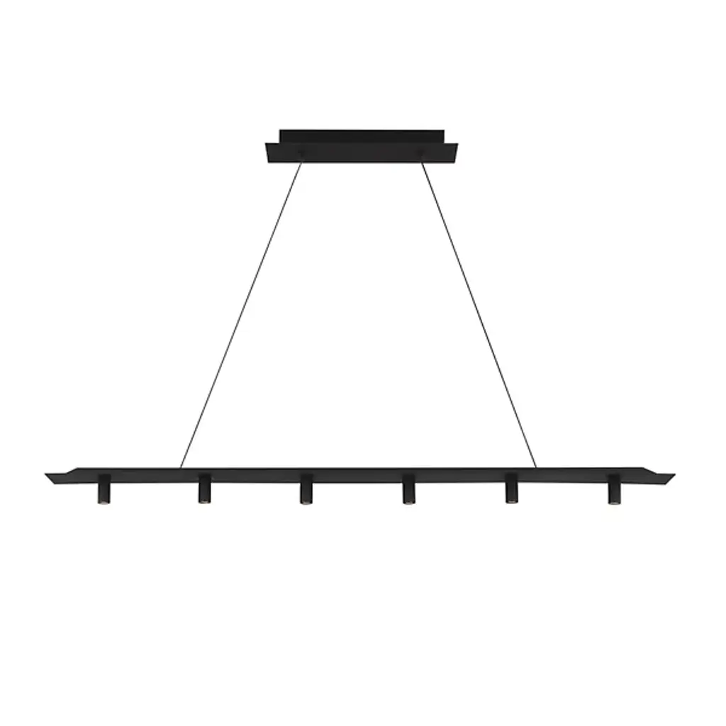 The Ponte LED Linear Suspension 277V from Visual Comfort Modern, formerly known as Tech Lighting, offers an unforgettable architectural addition to large indoor spaces. A stylish structure inspired by the Ponte Skyscraper in South Africa, it descends from a stepped rectangular canopy, extending two slim steel wires to a slender bar below which extends a series of open sockets from its lower edge. Each lamp is evenly-spaced and unencumbered by any shade structure, scattering a bright wash of compound downlight below ideal for both wide-reaching lighting and tasks or gatherings.