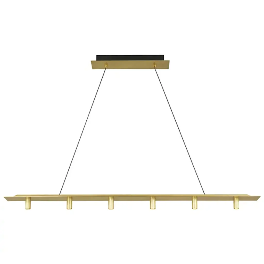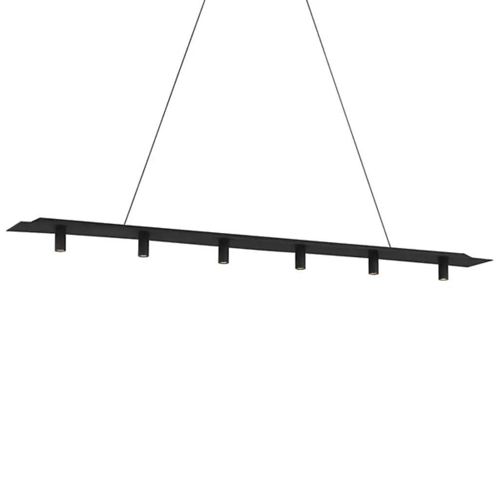 The Ponte LED Linear Suspension by Visual Comfort Modern, formerly known as Tech Lighting, is a sleek, streamlined design that was inspired by and named after the Ponte Skyscraper in Johannesburg. Suspended by a set of thin cables for an airy feel, this linear piece has a slender build at five inches wide that spans easily over the areas it illuminates. A collection of evenly spaced, cylindrical metal shades direct a layer of energy-efficient light downwards, completing the look of this architectural design while bringing a mix of form and function to its environment.