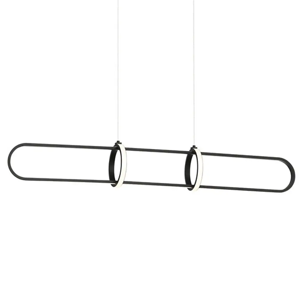 The Portici LED Linear Suspension Light by Huxe makes a sleek, contemporary statement with an arrangement of overlapping bands. LED rings are set apart from one another around an elongated oval band, filtering light through acrylic diffusers that travel along the outer edge of their slim frames. Suspended by thin cables and an oval canopy, this bright and engaging display of energy-efficient light is an airy yet bold addition to spaces.