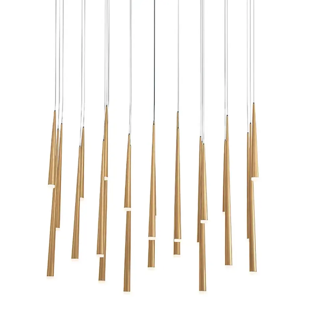 The Pylon Linear Suspension from Visual Comfort Modern represents minimalist lighting purity of design with its tapered metal bodies and domed optics. Designed by Sean Lavin, customized cable lengths ship attached for field customization. Quick-connect pendants feature optional spacers, facilitating unique suspended geometries with added dimension. The slim stepped rectangular canopy and crisp conical housings culminate in versatile midcentury brilliance, perfectly accenting modern dining rooms and kitchen islands with a subtle contemporary elegance.