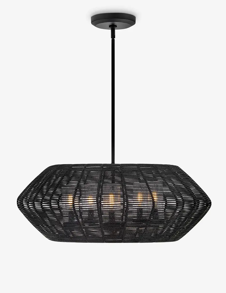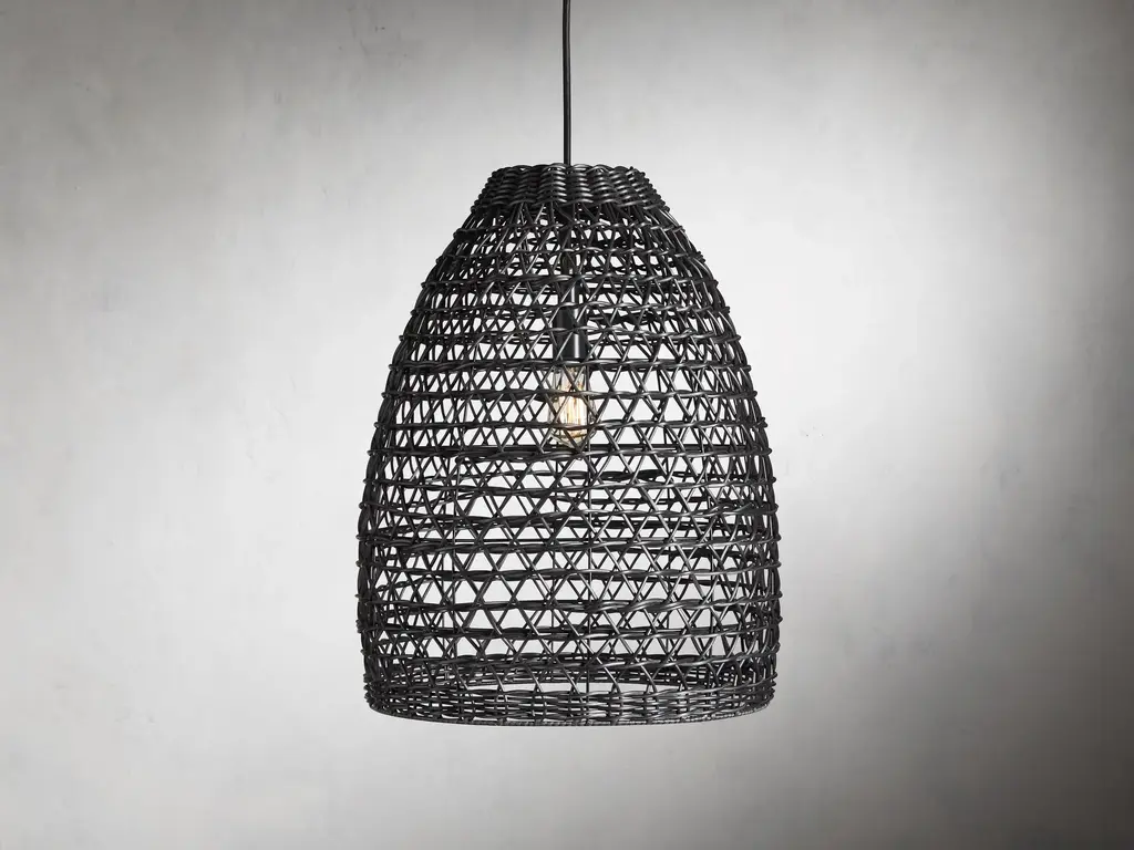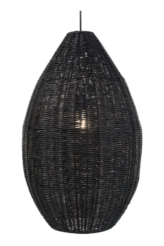 A combination of natural elegance and modern design, the Versmissen's San Rafael Pendant Lamp casts a gentle, ambient glow through its intricately woven design. Crafted from rattan in black finish, its rounded body and slender neck create a captivating silhouette that exudes sophistication and charm. Whether suspended over a dining area or illuminating a cozy corner, this lamp brings the beauty of nature in any home.