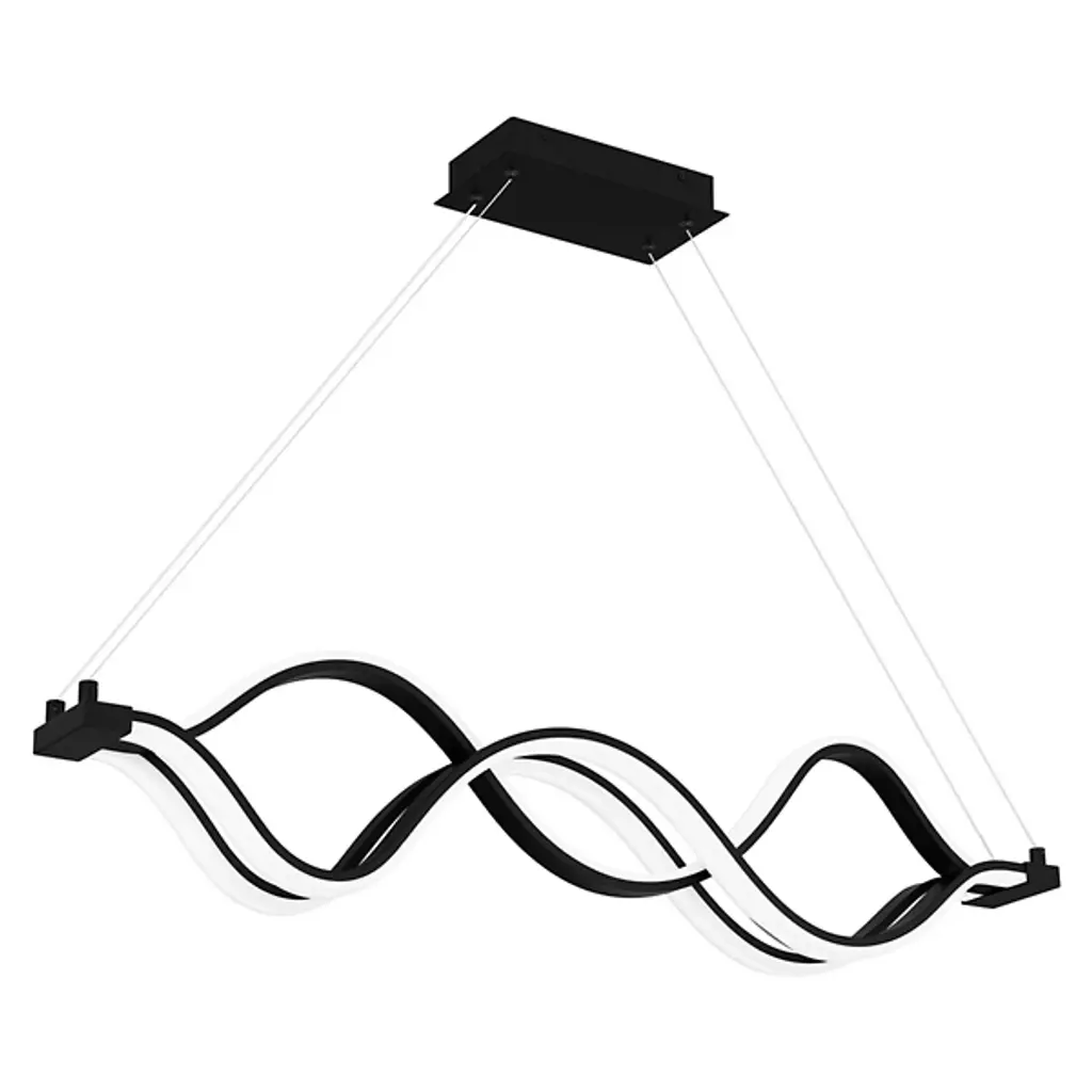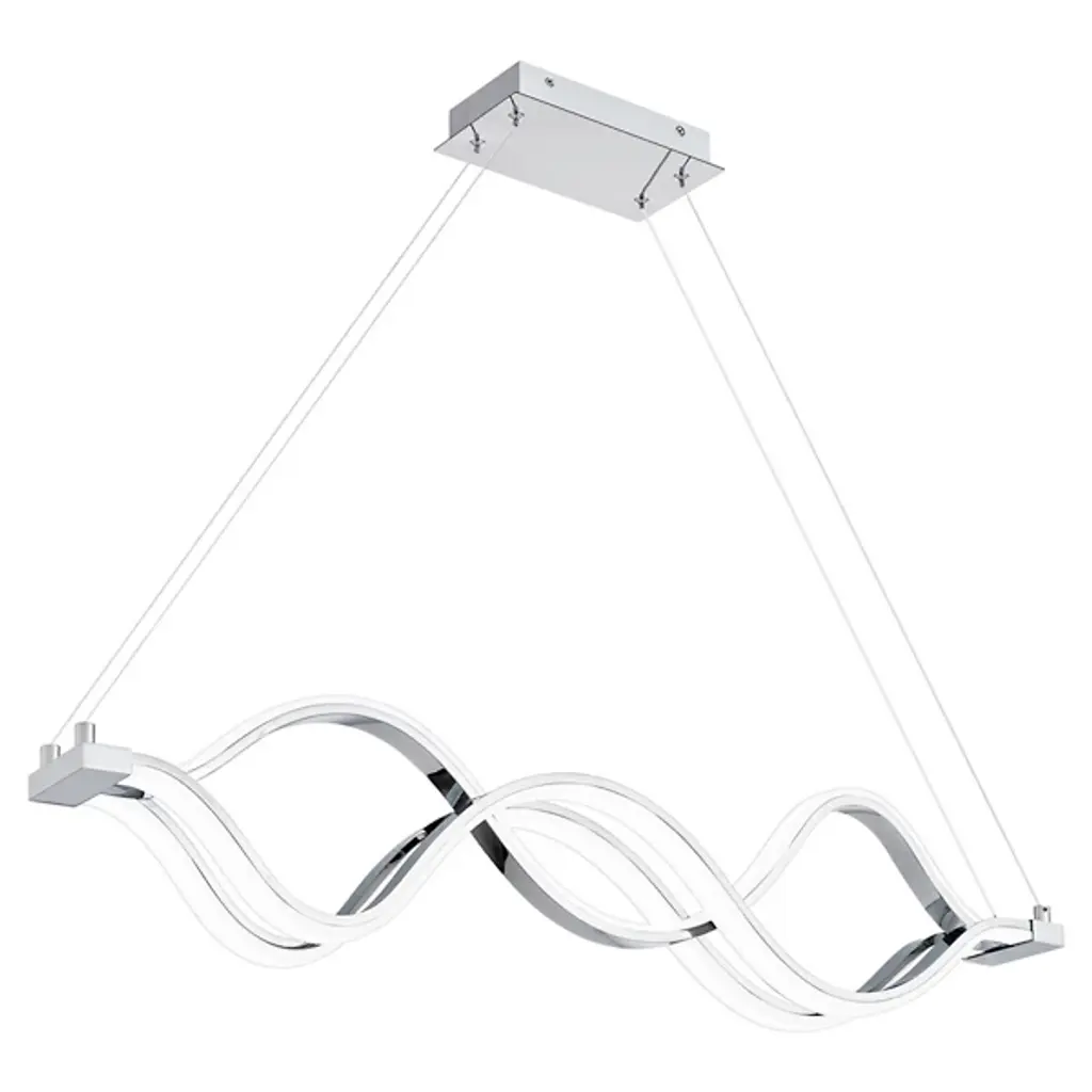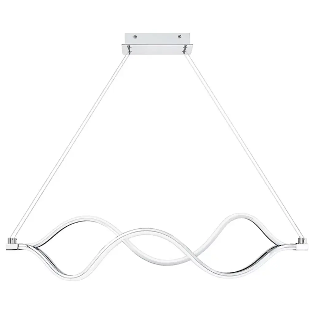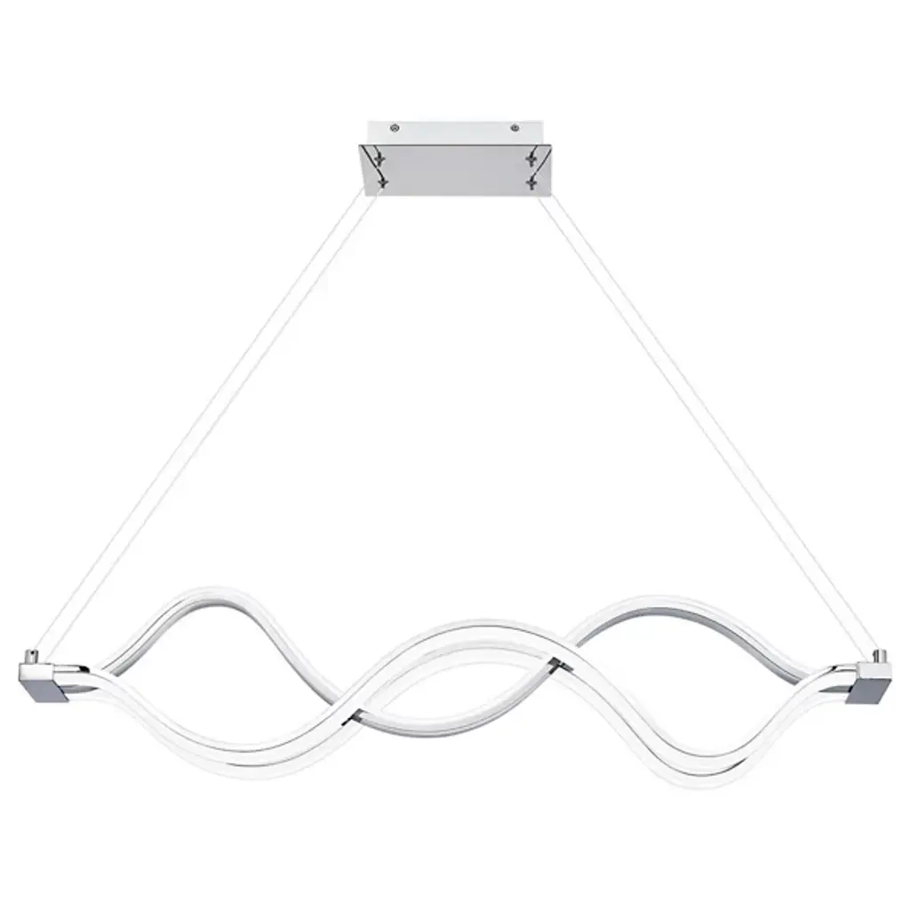 Airy, dynamic waves. The Renzo LED Linear Suspension by Huxe follows the path of light waves, electric currents, and the ocean with a sleek silhouette that is full of curves. A set of gracefully shaped metal bars rise and fall in opposite rhythms next to one another. Each one is paired with an integrated LED light source, allowing the light this linear design produces to travel along these wavy forms, evoking a sense of movement and brightening up the space around them.