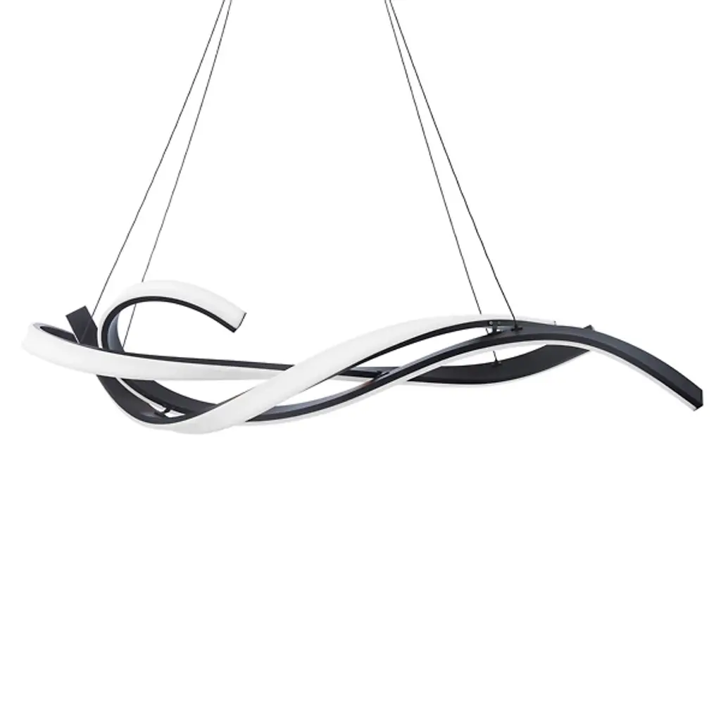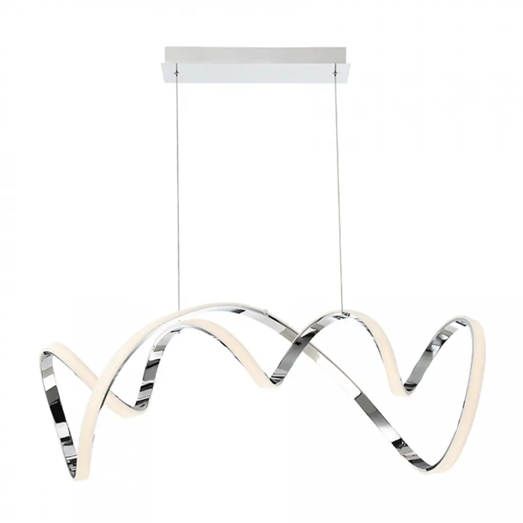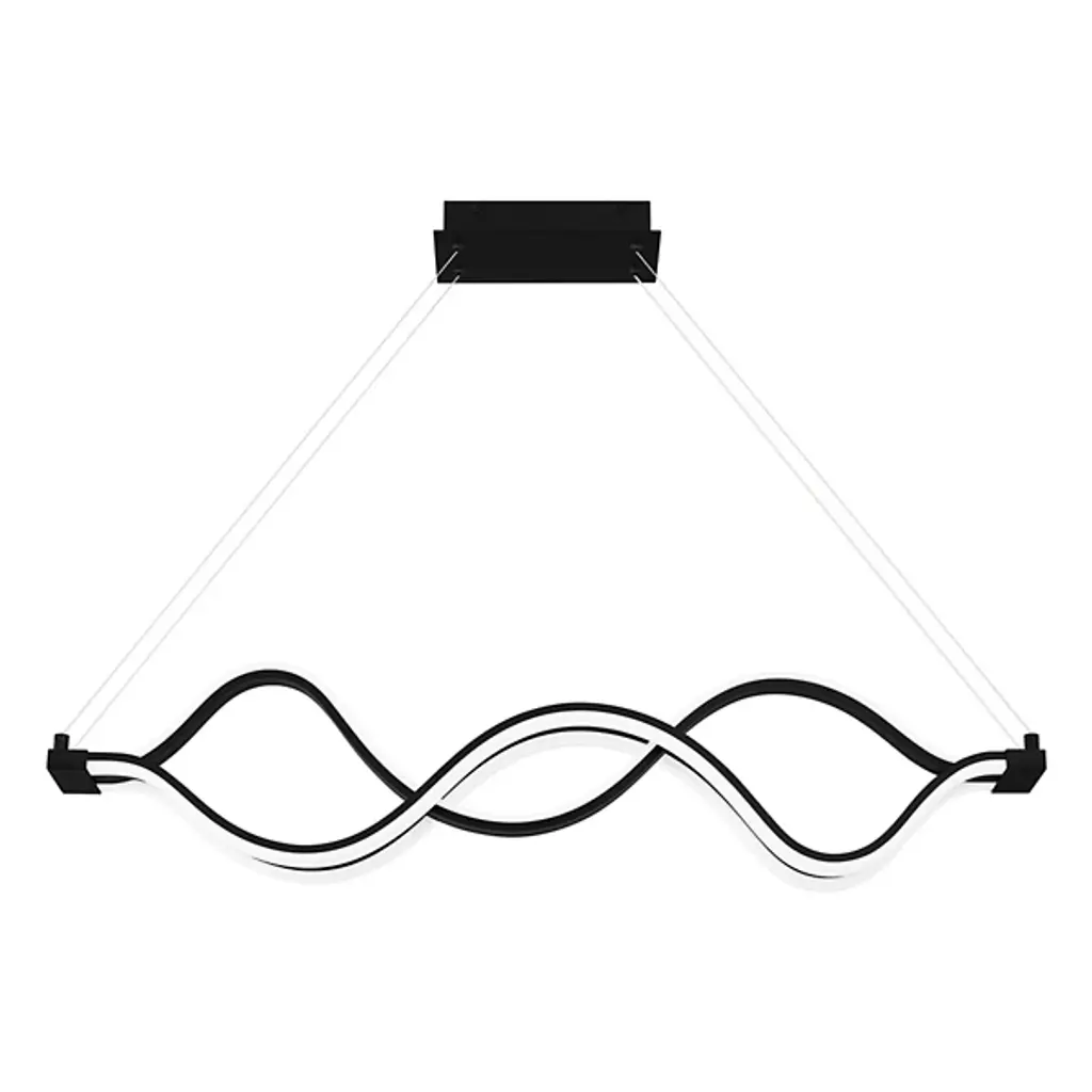 Airy, dynamic waves. The Renzo LED Linear Suspension by Huxe follows the path of light waves, electric currents, and the ocean with a sleek silhouette that is full of curves. A set of gracefully shaped metal bars rise and fall in opposite rhythms next to one another. Each one is paired with an integrated LED light source, allowing the light this linear design produces to travel along these wavy forms, evoking a sense of movement and brightening up the space around them.