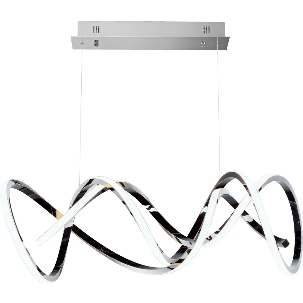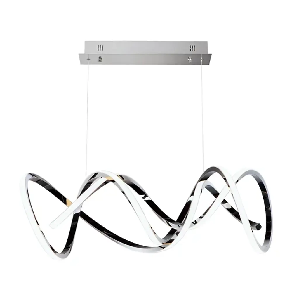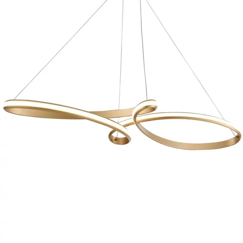 Airy, dynamic waves. The Renzo LED Linear Suspension by Huxe follows the path of light waves, electric currents, and the ocean with a sleek silhouette that is full of curves. A set of gracefully shaped metal bars rise and fall in opposite rhythms next to one another. Each one is paired with an integrated LED light source, allowing the light this linear design produces to travel along these wavy forms, evoking a sense of movement and brightening up the space around them.