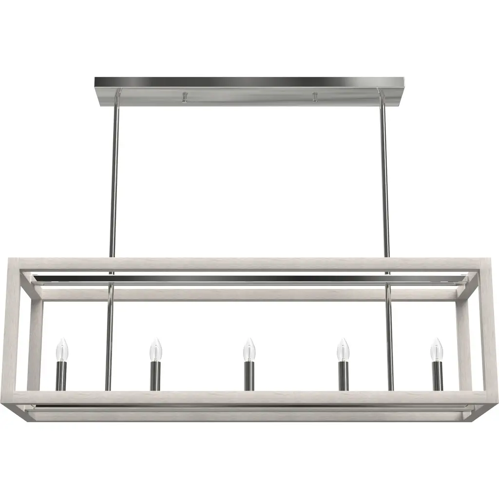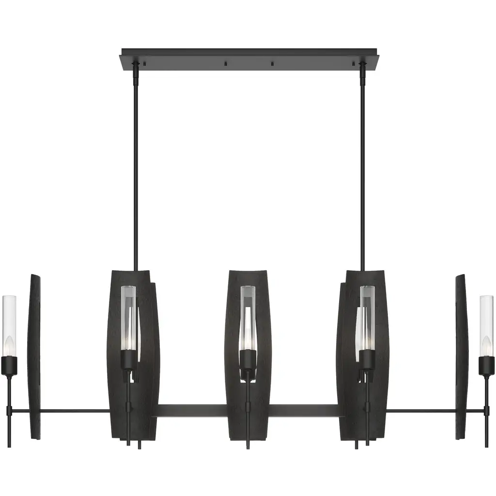 Luxurious décor at the center of it all. The Revolve Linear Suspension by Alora Lighting presents a refined glamour through its subtle shapes and clean lines. Its rectangular steel canopy drops two stems from each far end, suspending a narrow bar of equal width. Clear glass cylinders with steel-capped rims surround candelabra-style lamping, arranged in a linear formation to create a symmetrical display that lends a beautifully balanced glow over its environment.