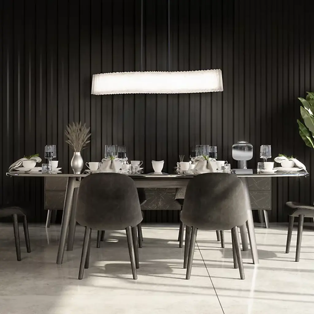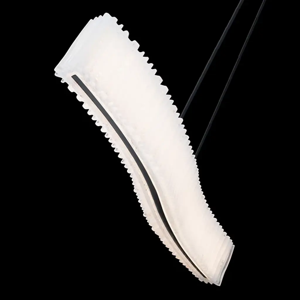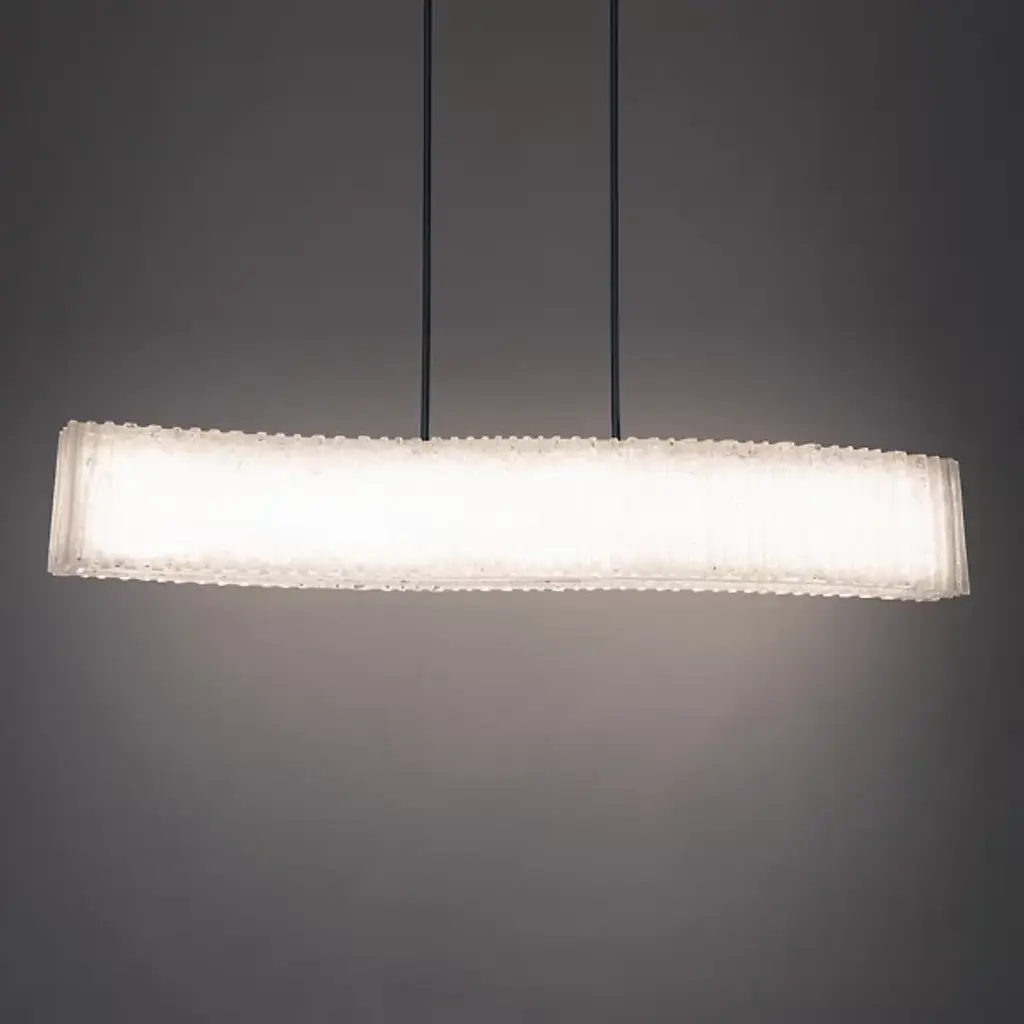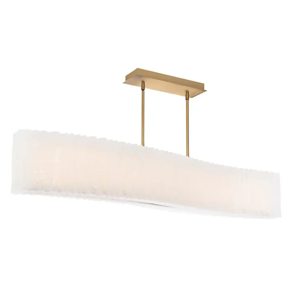 Add natural elegance to large open spaces with the fluid, sculptural lines of the Rhiannon LED Linear Suspension from Modern Forms. Ideally suited to a large gathering space or brightening a kitchen island, it’s daring and dazzling in equal measure, using an understated structure made of extruded aluminum to support a curving light housing containing strong, energy-friendly LED lamping. A vertically striated and richly textured wraparound diffuser of reclaimed crystal marches around the sides of the housing, shedding a mellow, even ambiance to all sides.