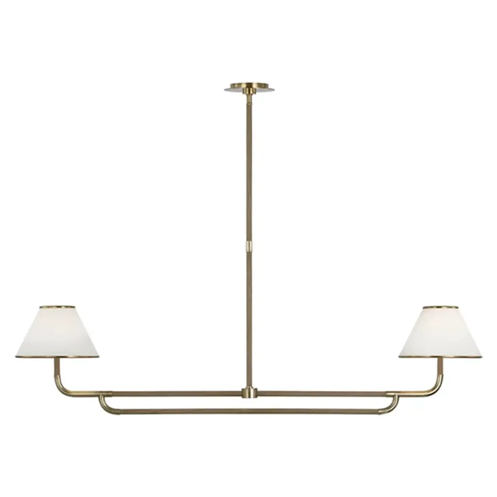 Presented by Visual Comfort Signature, the Rigby Linear Suspension by Marie Flanigan showcases a design with elegant, contemporary refinement. It is accented with unexpected wooden elements that complement their accompanying finish, while trimmed linen shading completes the look. Enlightened by design, Rigby will easily serve as a novel conversation piece in your space.