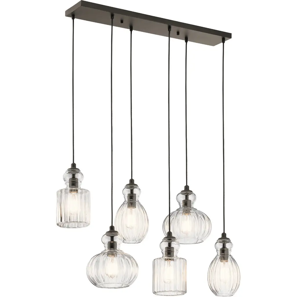Sleek, clean and vibrant, the Riviera Linear Suspension by Kichler is an eye-catching statement piece that will wow your guest. Offered in two metallic finishes and comes with three types of glasses all hoisted on a single rectangular canopy. Crafted with Clear Ribbed glass that has an oval, circular and cylindrical shape.